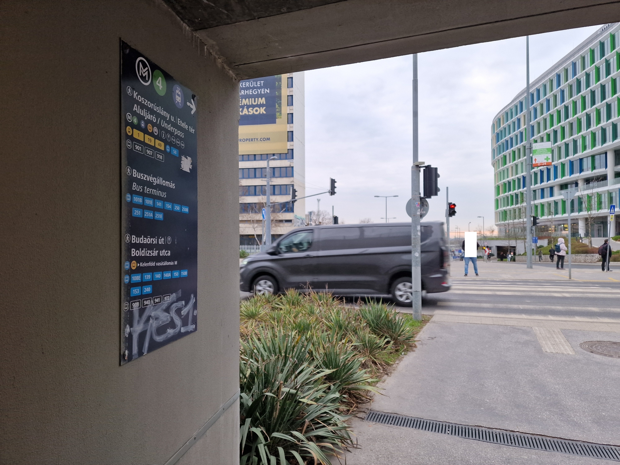 A Budaörsi út gyalogos aluljáró tájékoztató táblák össze vannak firkálva.