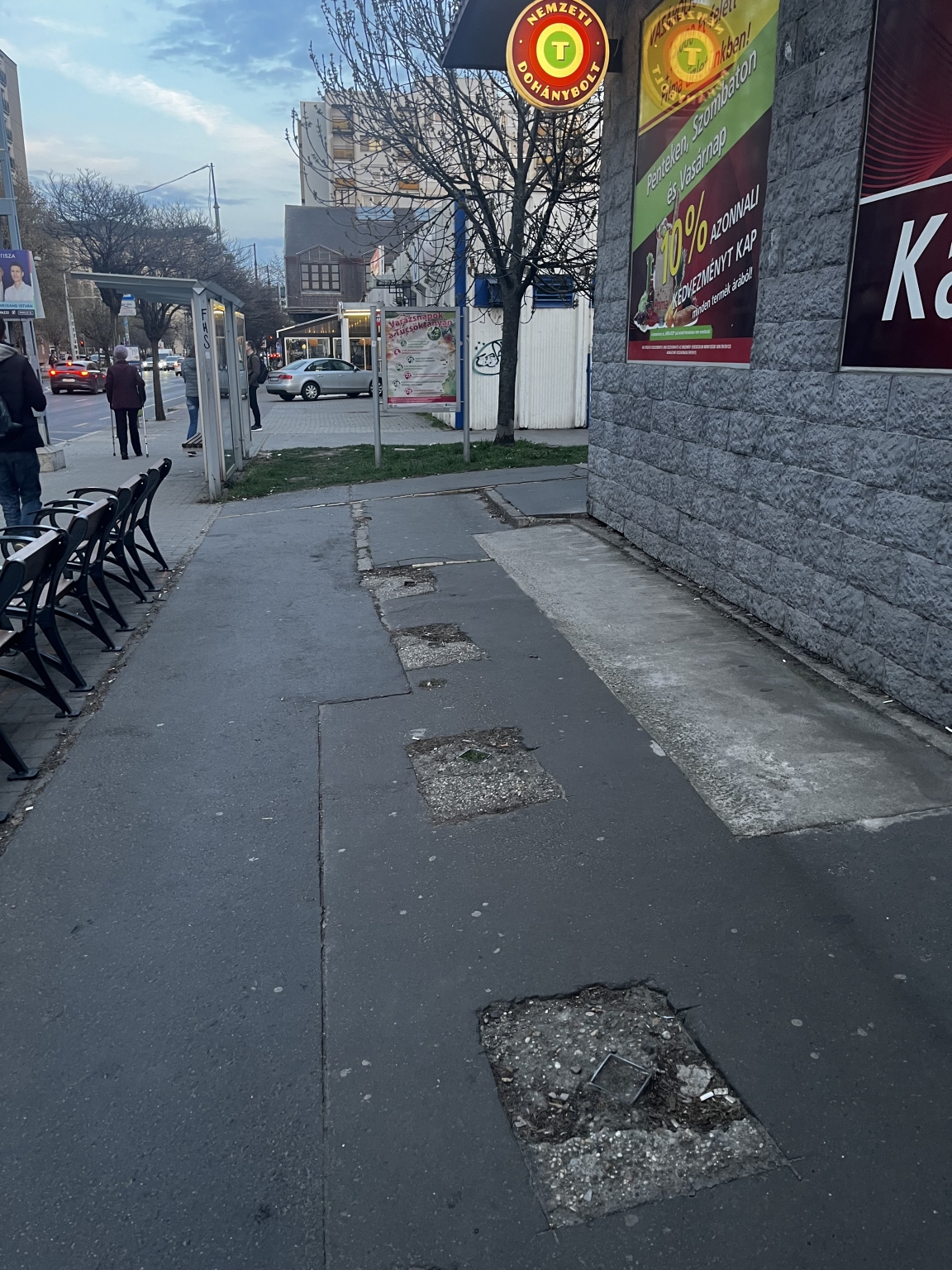 Dráva utcai Príma mellett a troli megálló mögötti padokból balesetveszélyes oszlop csonkok találhatóak. Kérem csináljanak valamit, mert ez így balesetveszélyes. Köszönöm!