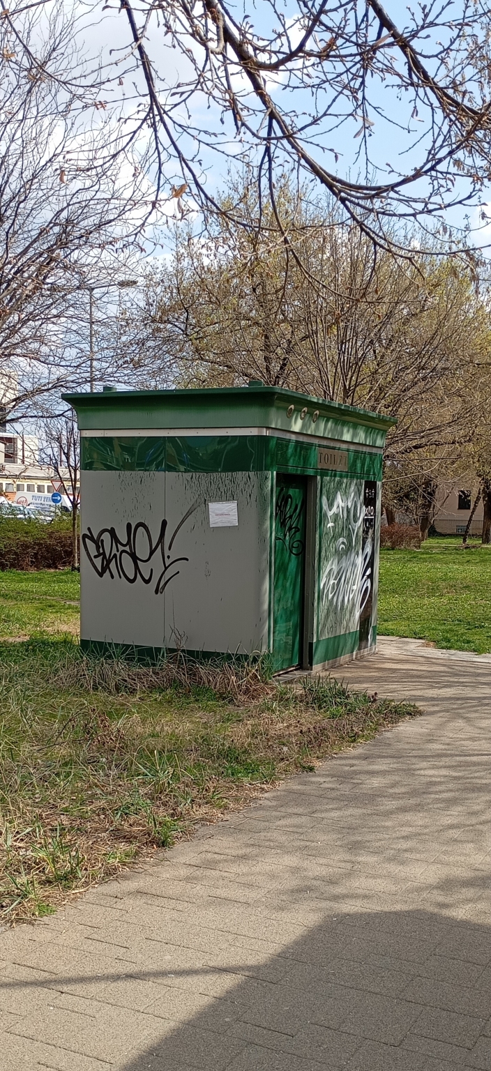 A Bosnyák téren már vagy egy éve nem működik a fotón látható "körülszaros buditorzó". A wc-nek a létjogosultsága sokat gyengült, mivel a Csömöri úti buszvégállomások megszüntek, a megállókat is áthelyezték; továbbá a Zenit Corso alagsorában nyílt egy minden igényt kielégítő nyilvános wc, kb. 200 méterre onnen. Ezt a nyilvános wc-t vagy rendbe hozatala után meg kellene nyitni, vagy lebontani. (A jelzőt azért adtam, mert normális emberi attitűd, hogy ha szorítja a szükség, tud akár 200 métert is tovább menni, de ha talál egy illemhelyet, de az zárva van, keresnie kell egy bokrot, hogy könnyítsen magán).