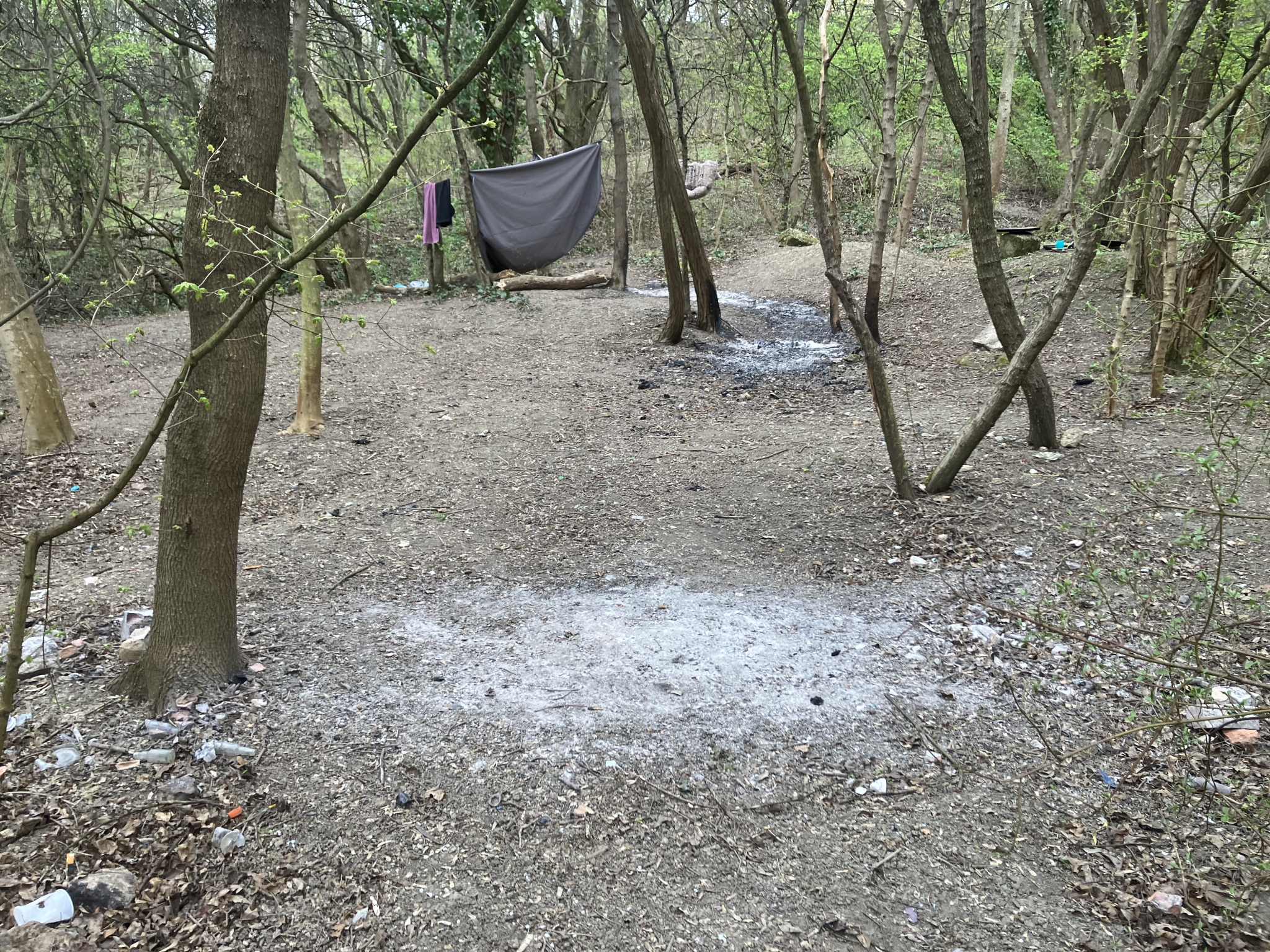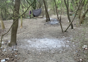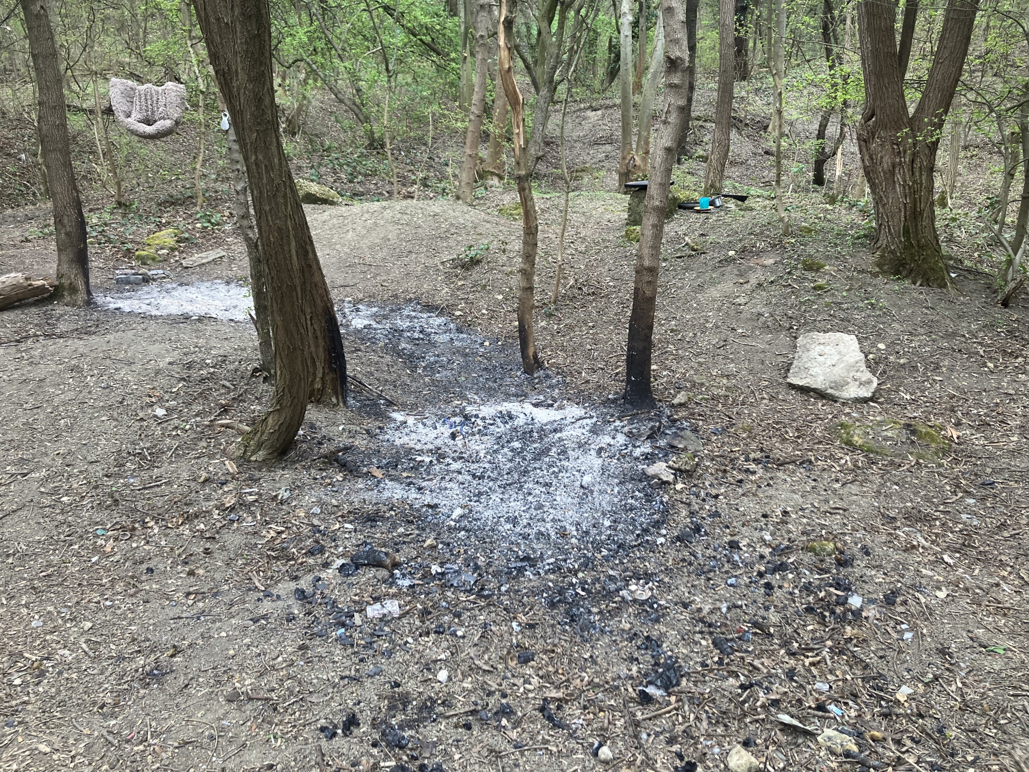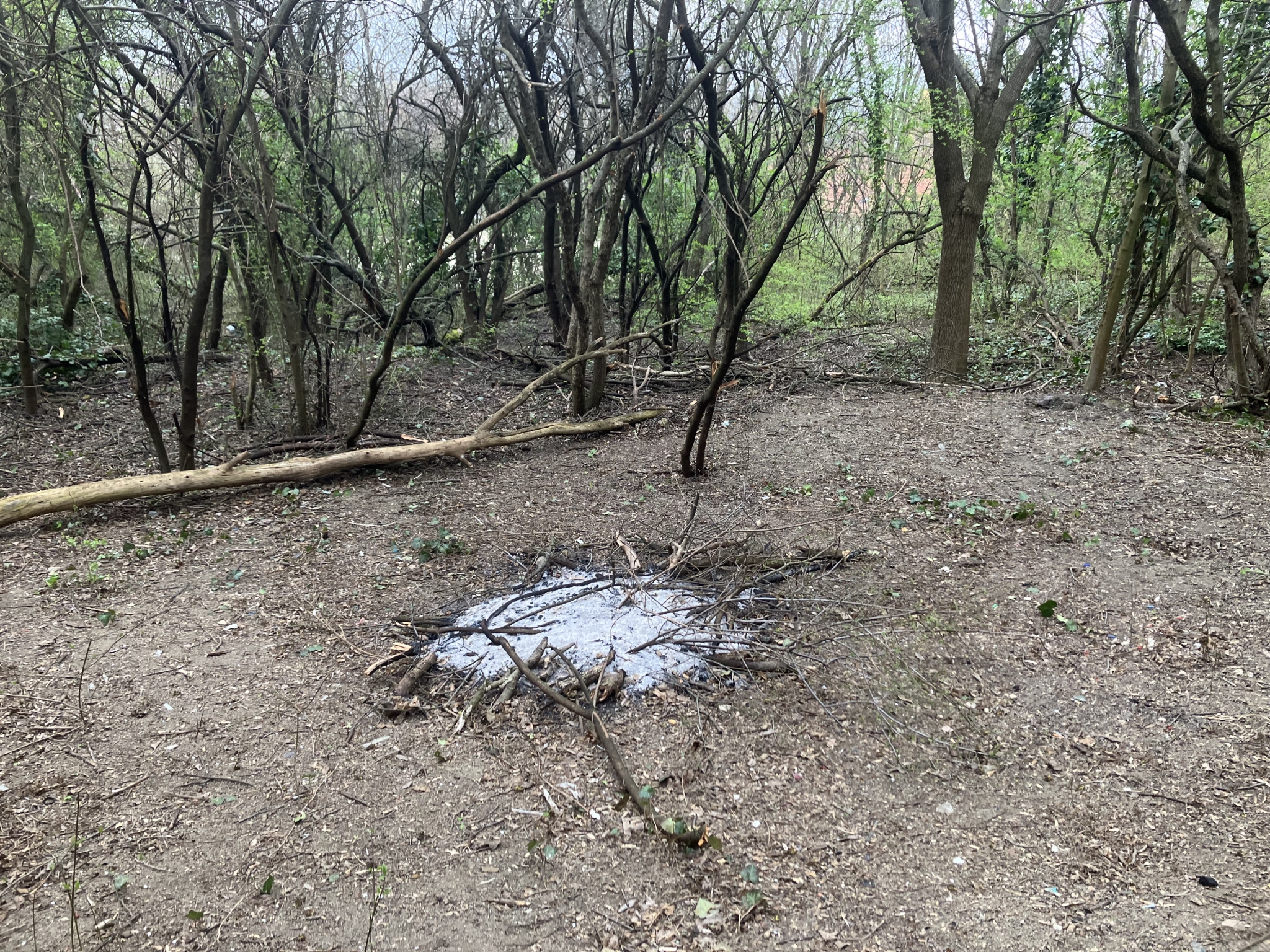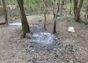 1-2 napja egy ember égeti a III. kerületben a Szent Margit Kórház mögötti területen az erdőt, kivágja a fágaz, gallyakat és eltüzeli.