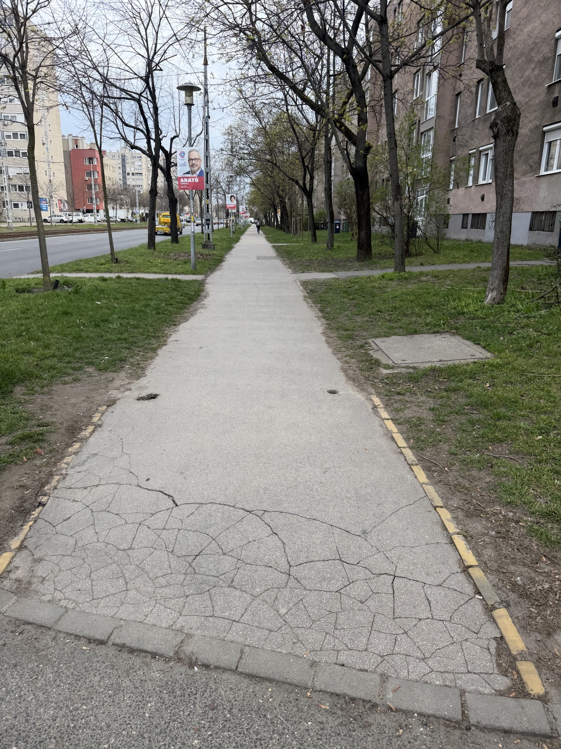 A Nagy Lajos király útja ezen szakaszán még szerencsére nem parkolnak a fűben az autók. Sajnos próbálkozások vannak.