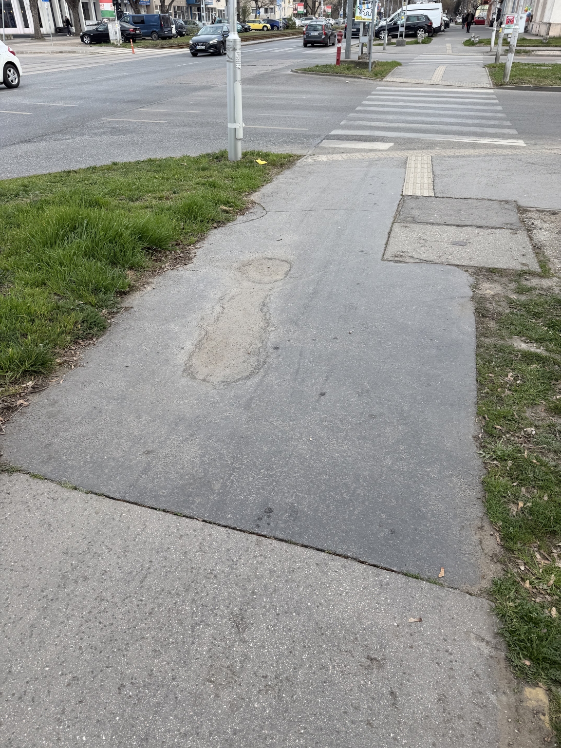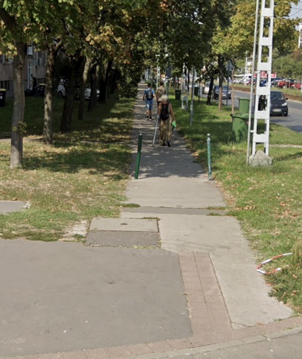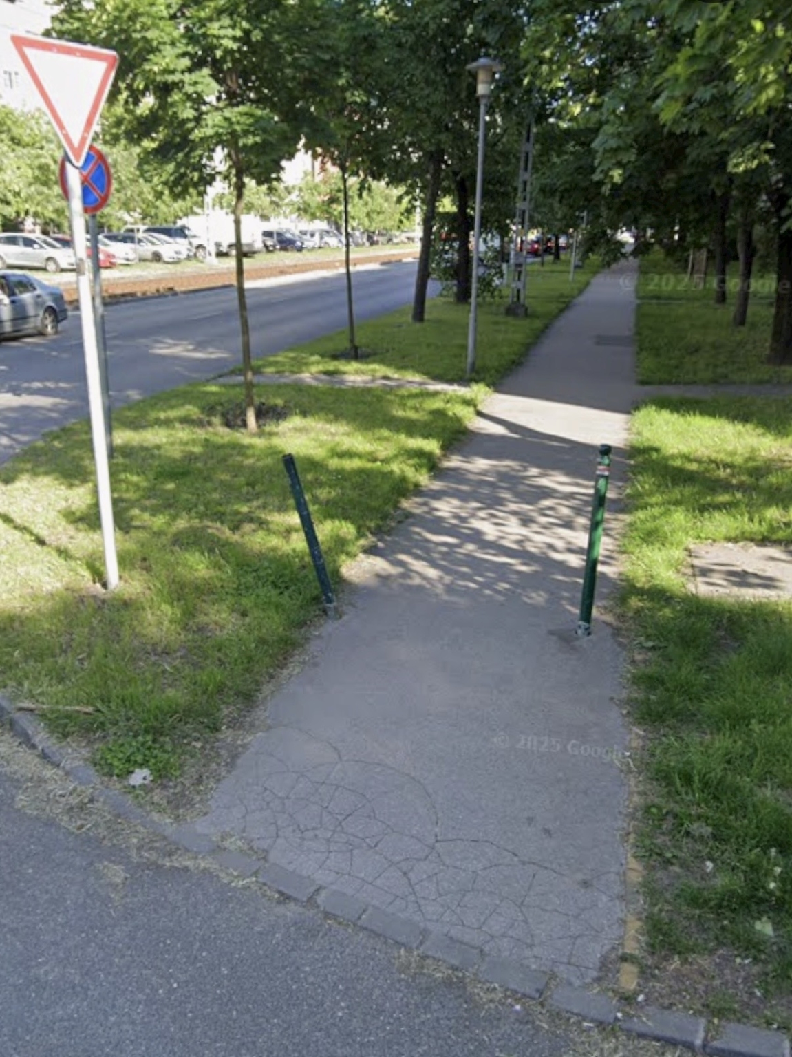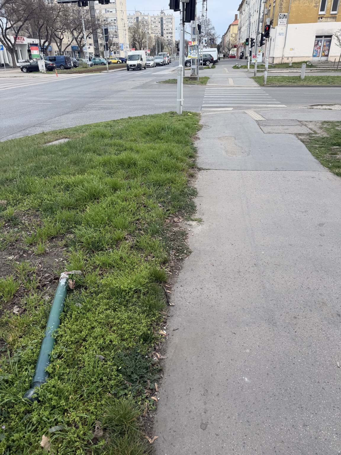 Kérjük a pollerek pótlását, a járda javítását.