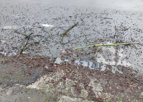 A hársfákról régóta hullanak az ágak, töredeznek le, nyár közepén a lombozat erősen sárgába hajlik. Gyanítjuk, hogy túl nagy nekik a szárazság. Az ágak szinte függőlegesen lógnak lefelé.