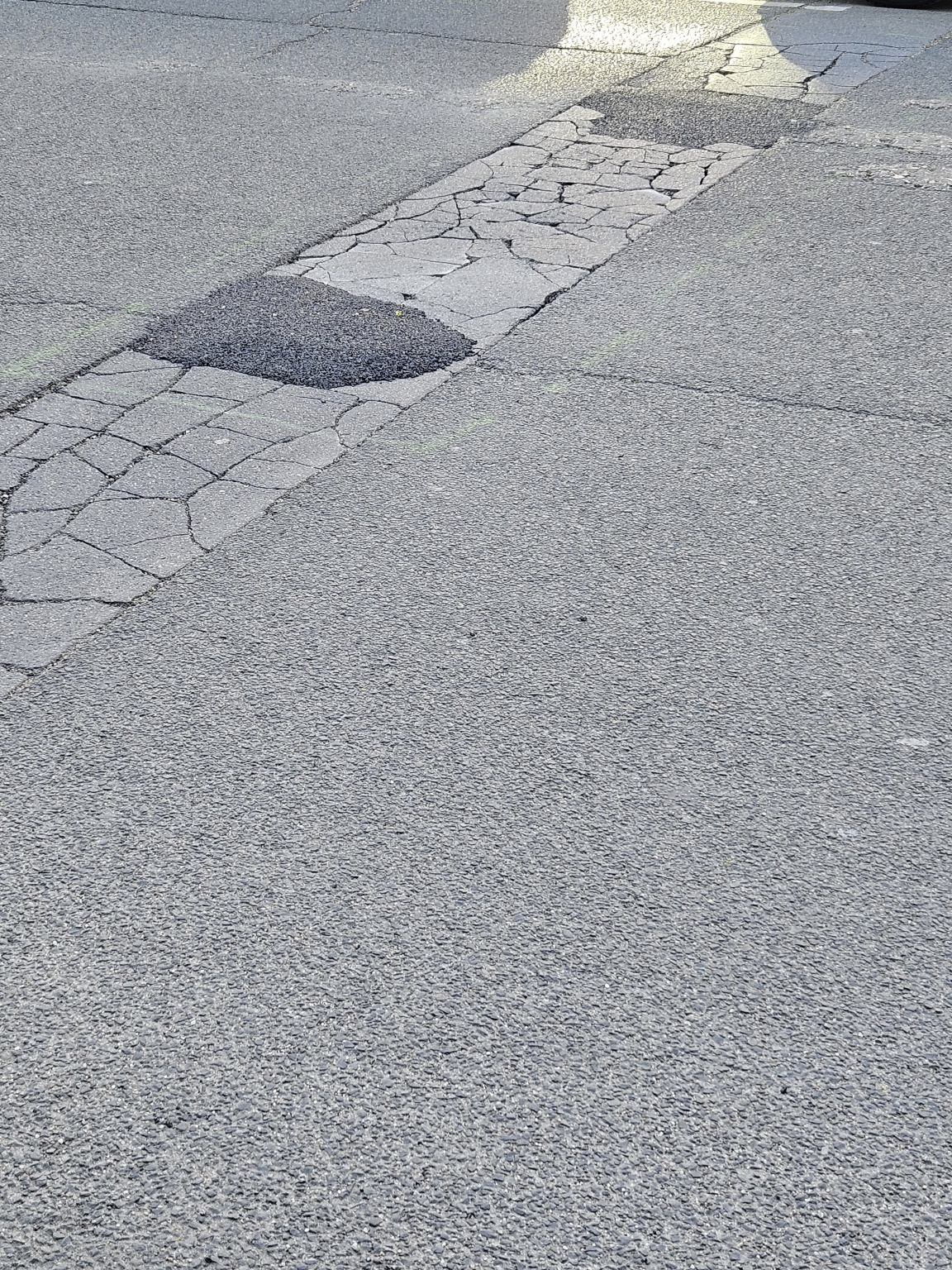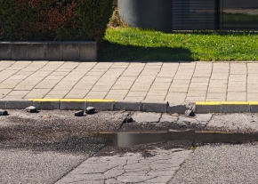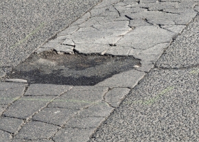 Útburkolat szettoredezik, és a darabjai szétszóródtak az úton.