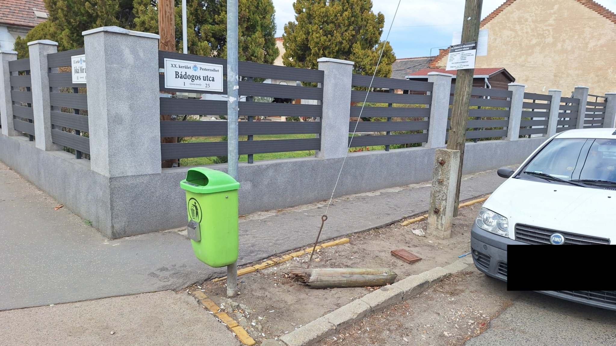A Bádogos és Jókai Mór utca sarkánál hever egy egykori kitámasztó cövek, ami eredetileg a mellette lévő távközlési oszlophoz lehetett rögzítve.