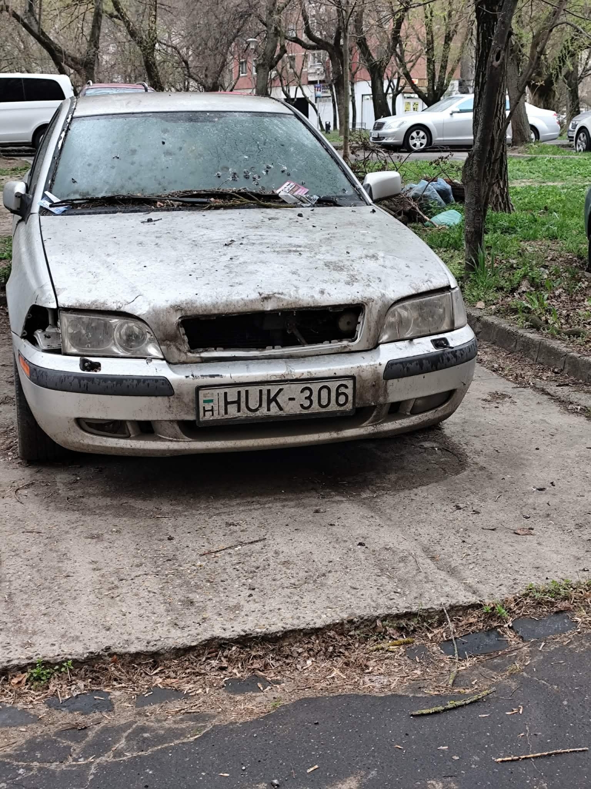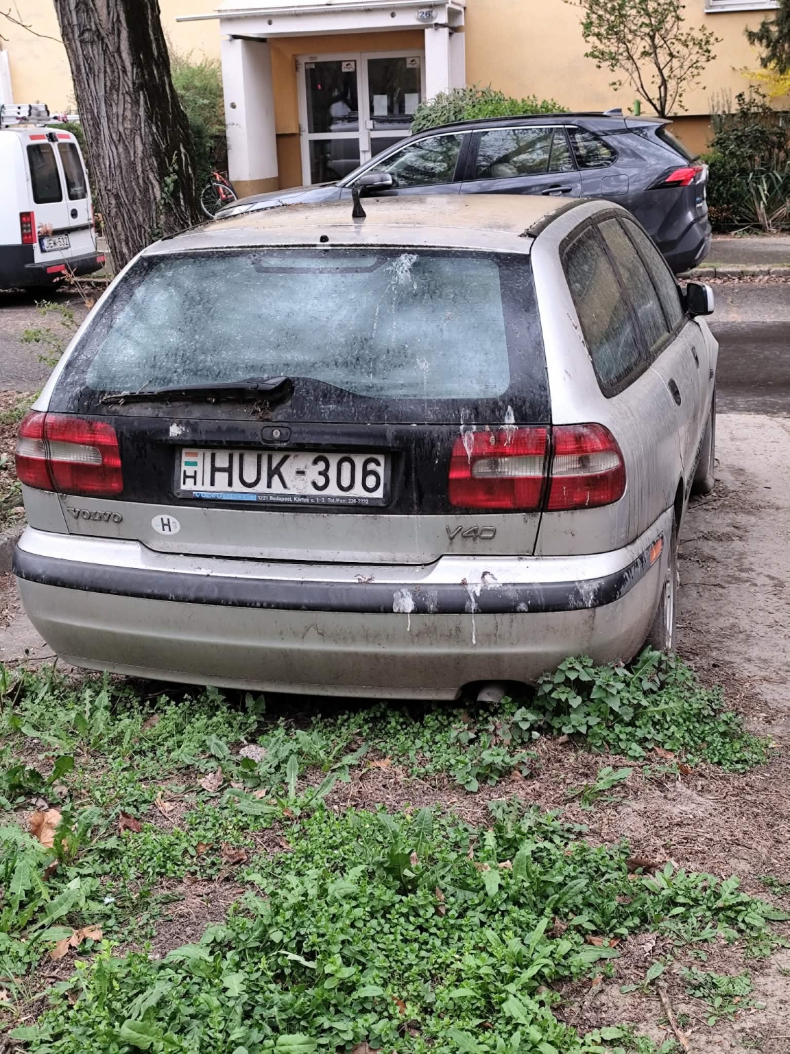 Békásmegyer Gyűrű utca 26-28 lakóházai közötti parkolóban ezüst színű Volvo V40 típusú roncsautó immár két és fél éve (első lakossági bejelentés: 2023.09.21.) foglalja a helyet.