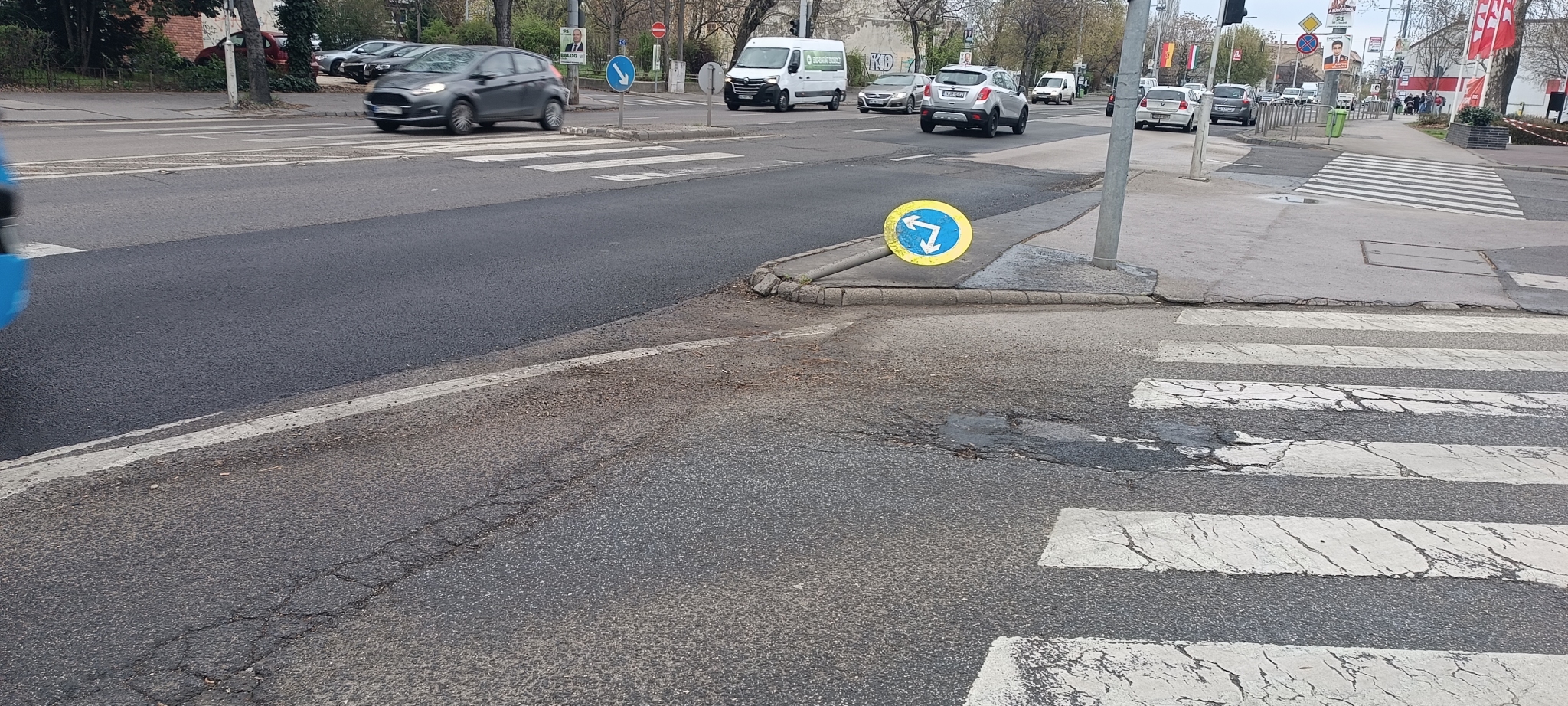 Közúti KRESZ tábla sérült, Árpád úton