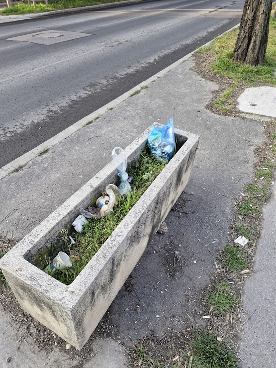 A fotókon látható láda különösen gusztustalan. Látszik, hogy igény lenne ürüléktartó edényre, mert a környéken sehol nincs ilyen. Kérjük egy kutyagumitartó kihelyezését és a betonkocka gondozását.