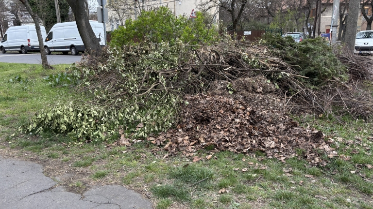 A képen látható zöldhulladék kupac napról napra egyre nagyobb lesz a XIX. kerület Hungária út és Zalaegerszeg utca sarkánál.