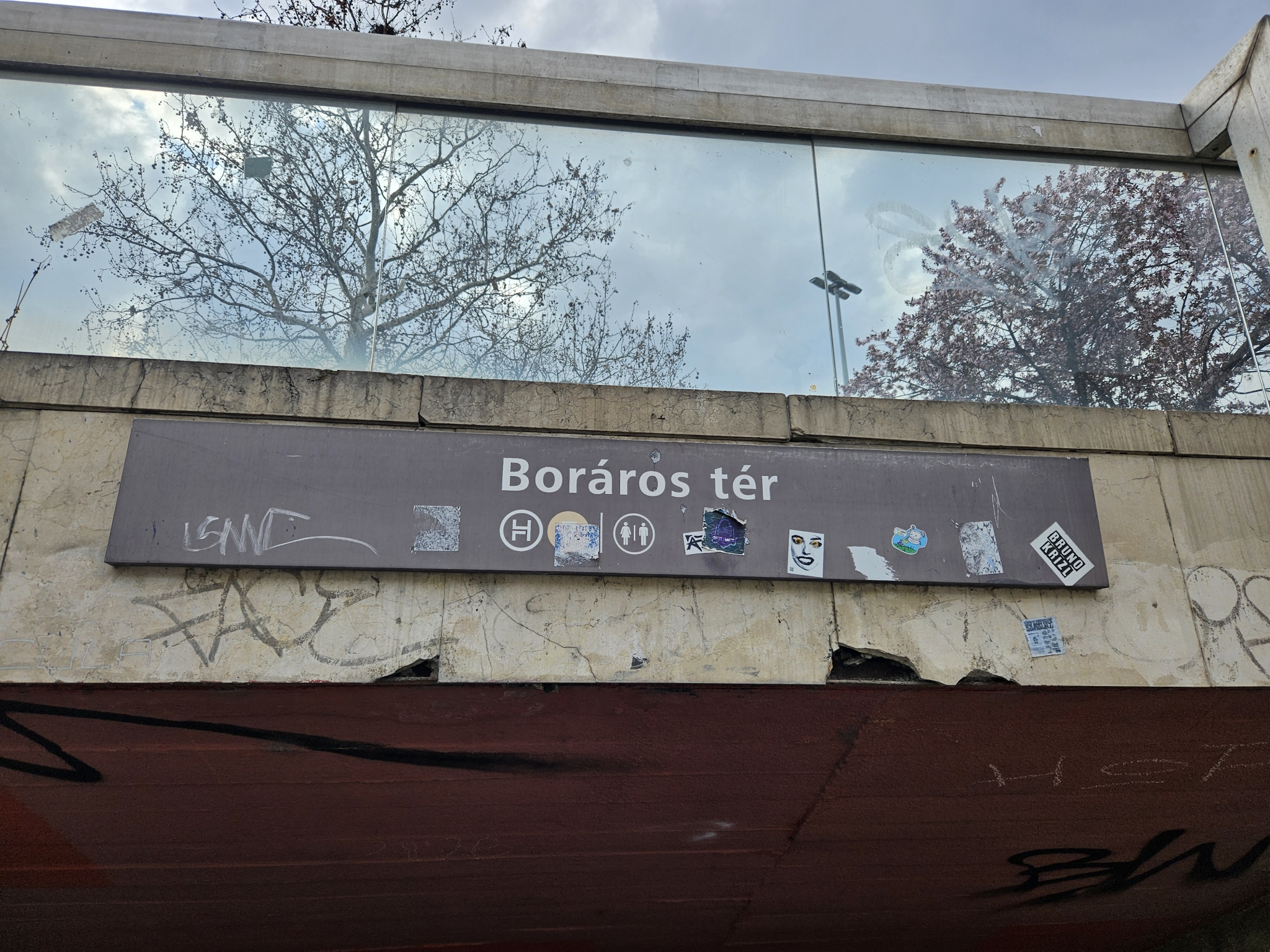 Újra firkálva és matricázva van a Boráros téri aluljáró G lépcsője.