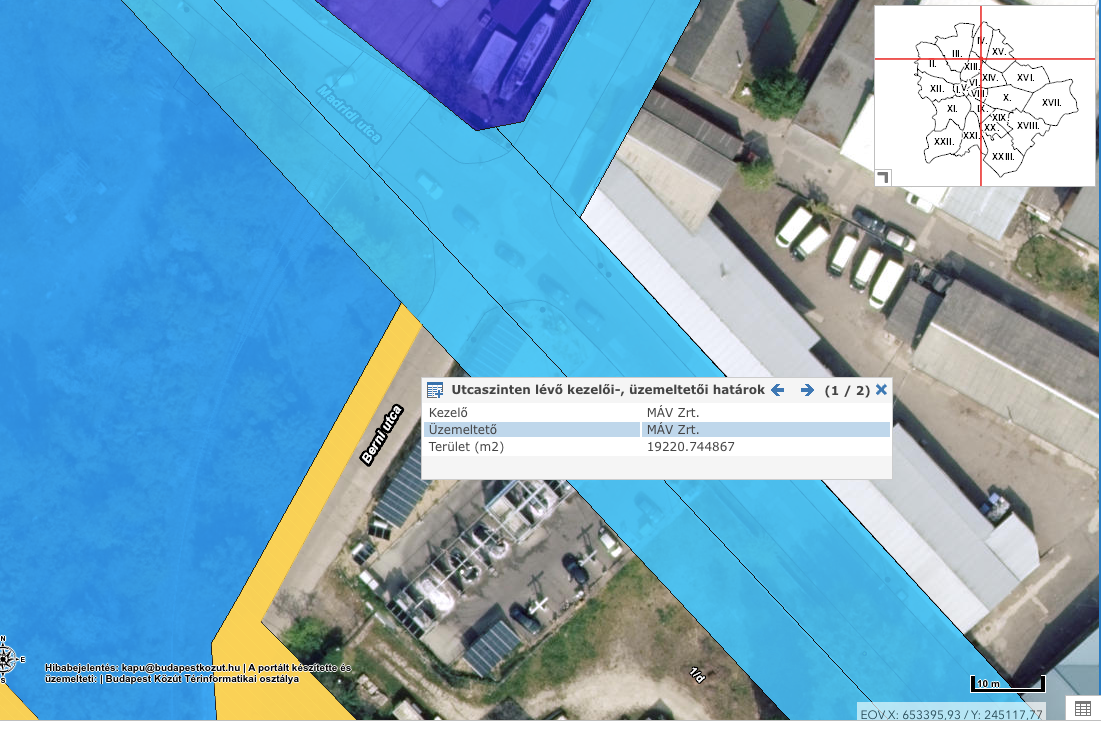 "A csatolt térinformatikai lekérés szerint a sárgával jelölt szakasz a MÁV Zrt. kezelésébe tartozik.