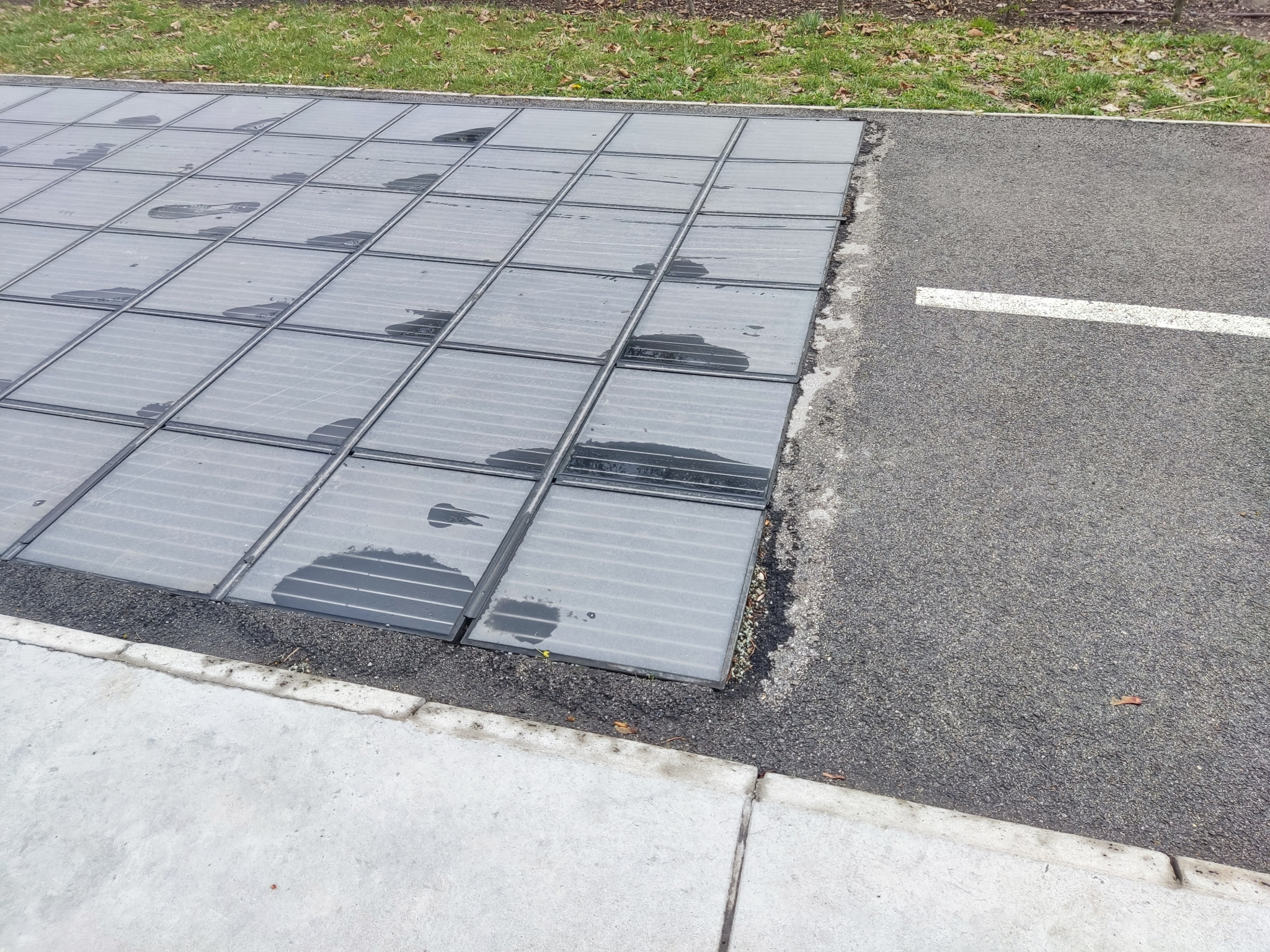 Kresz-parkban burkolathiba. Sokáig a felpúposodott aszfalt okozott problémát, most a szakszerűtlen javítás miatt akad meg a roller kereke. Kérjük a (garanciális?) javítását, hogy síkban legyen a burkolat a csatlakozással.