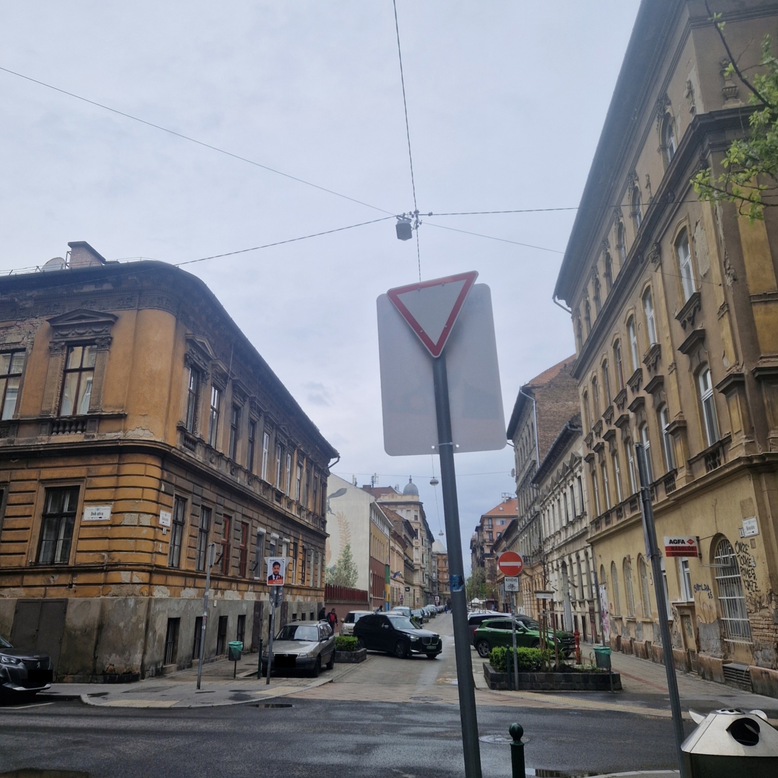 Az ideiglenesen kihelyezett választási plakátok hátulról takarják a KRESZ-táblákat, amelyek így hátulnézetből nem felismerhetők a szemből, oldalról érkezők számára, pedig hasznosan informálná őket a forgalom rendjéről. Abban sem lehetnek biztosan az erre közlekedők, hogy nem takar-e a számukra kihelyezett táblát a plakát, ez zavart okozhat és akár veszélyes helyzetet is teremthet. Ezek a táblák ugyan egy egyirányú utcában vannak, de a kijelölt kerékpárút kétirányú, illetve az utcára ráforduló forgalom is van több kereszteződésben.
