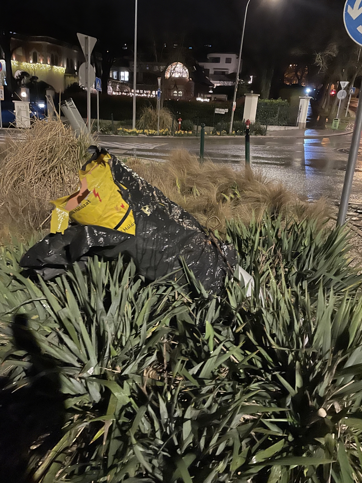 Két kidőlt pózna (vagy valamilyen takaró cső) kókadozik lassan egy éve