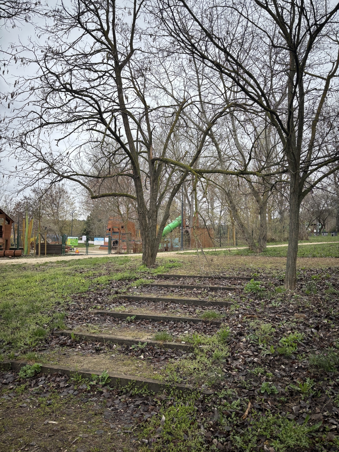 Az óbudai Mészkő parkban több fa meg van sérülve és több ág le van törve. Rohangáló gyerekek esetén balesetveszélyes is