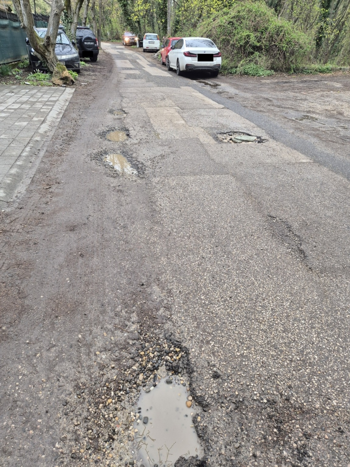 A Hárshegyi ut alsó szakaszan az 1 számtól az 5 szamig a padka megsüllyedt, a zúzott kő lesüllyedt, a padka szélek letöredeztek, és 5- 6 legalabb 15 cm mély, es 30-50 cm széles kátyúk vannak. Az utcaban a Manda, Hotel,Iskola,Kongresszusi központ miatt nagy a terheles. Kérem javitani zúzott kő teritésevel, ill. Foltozassal.