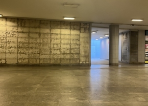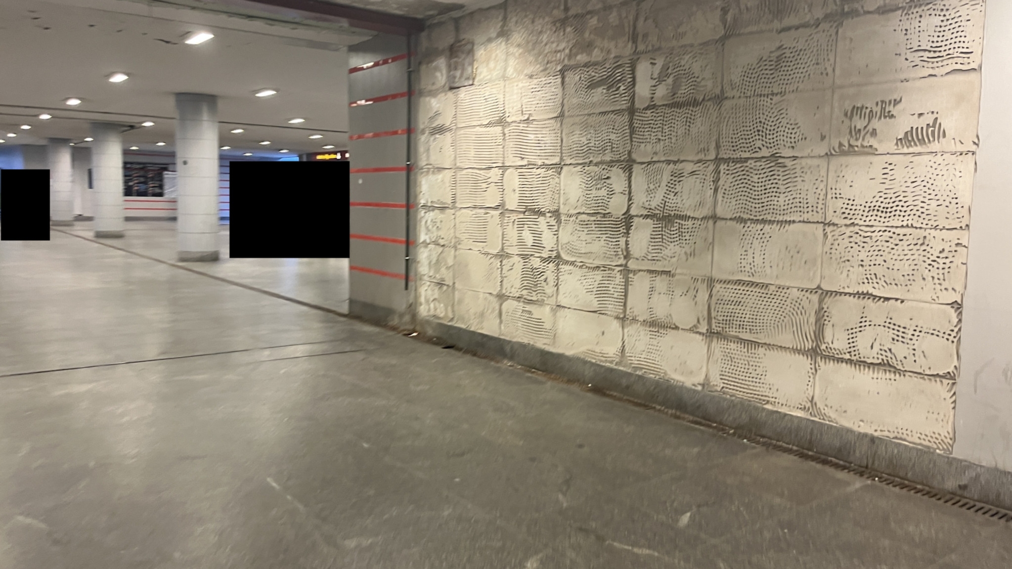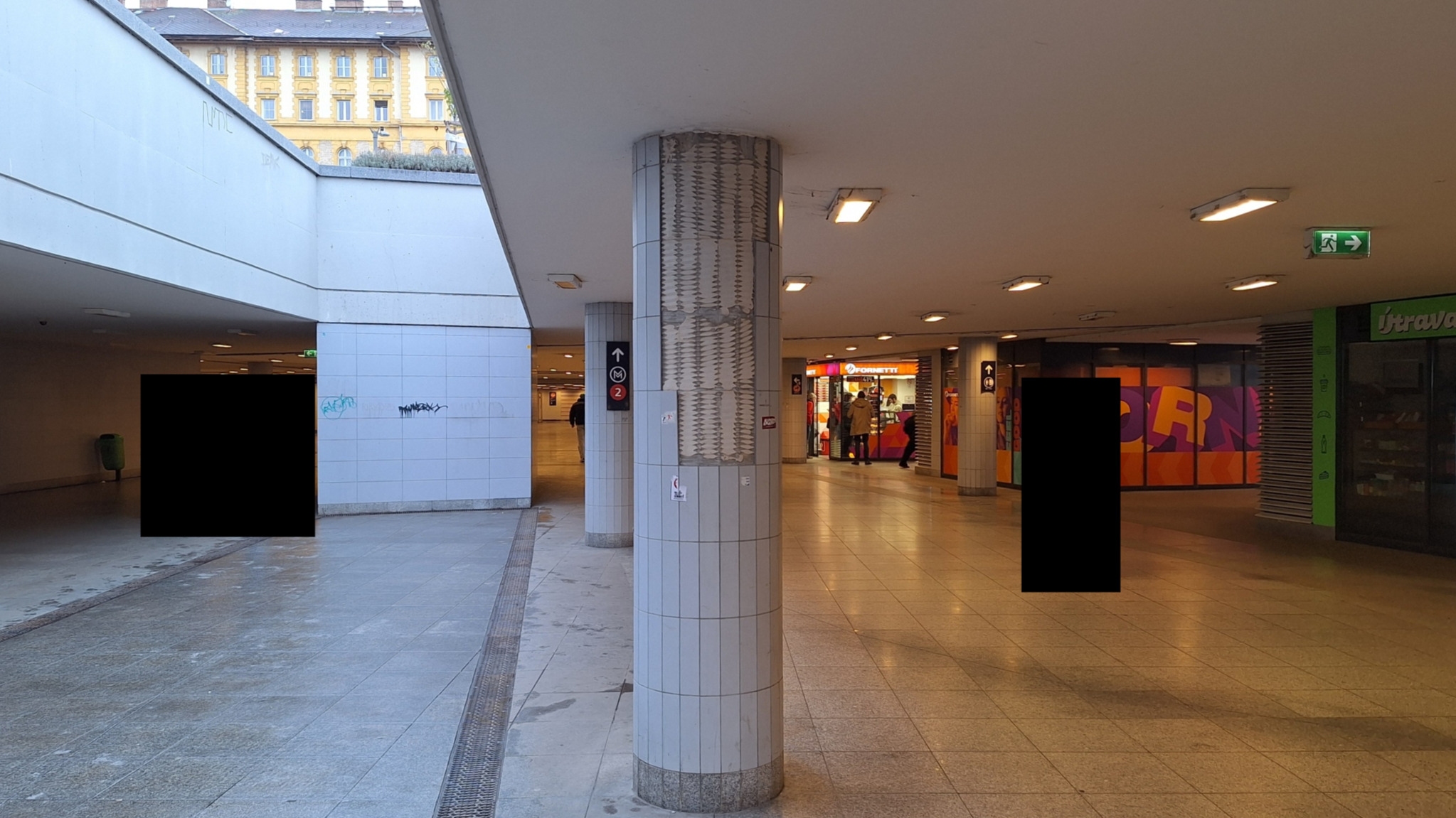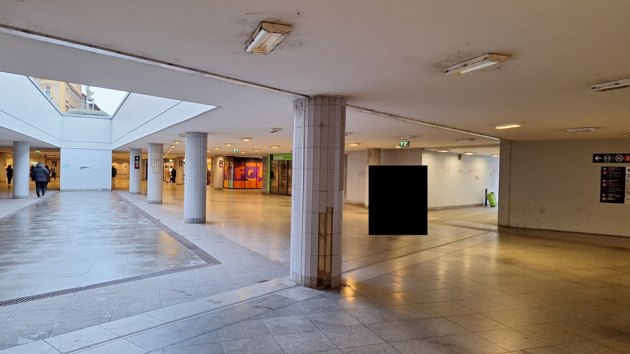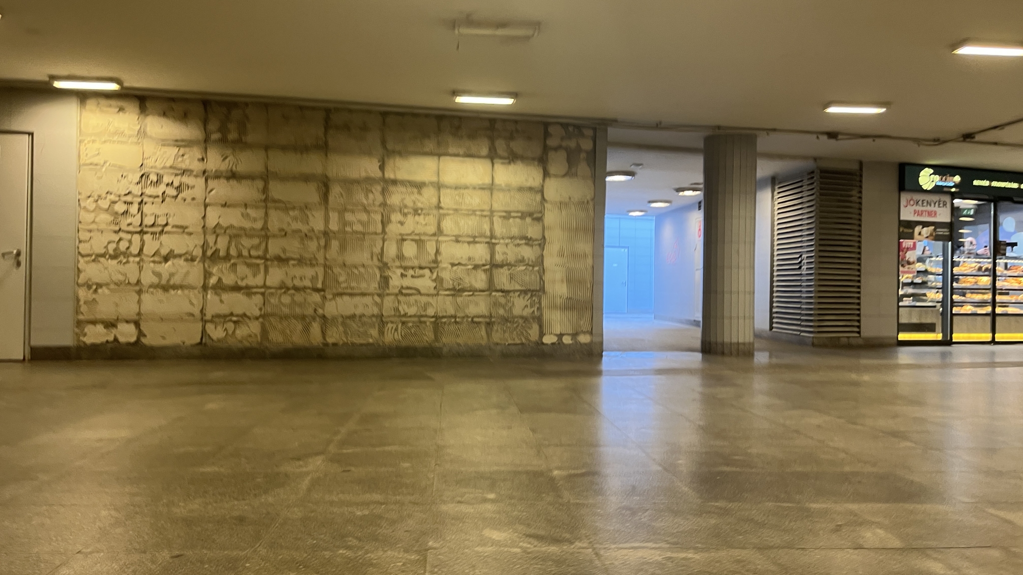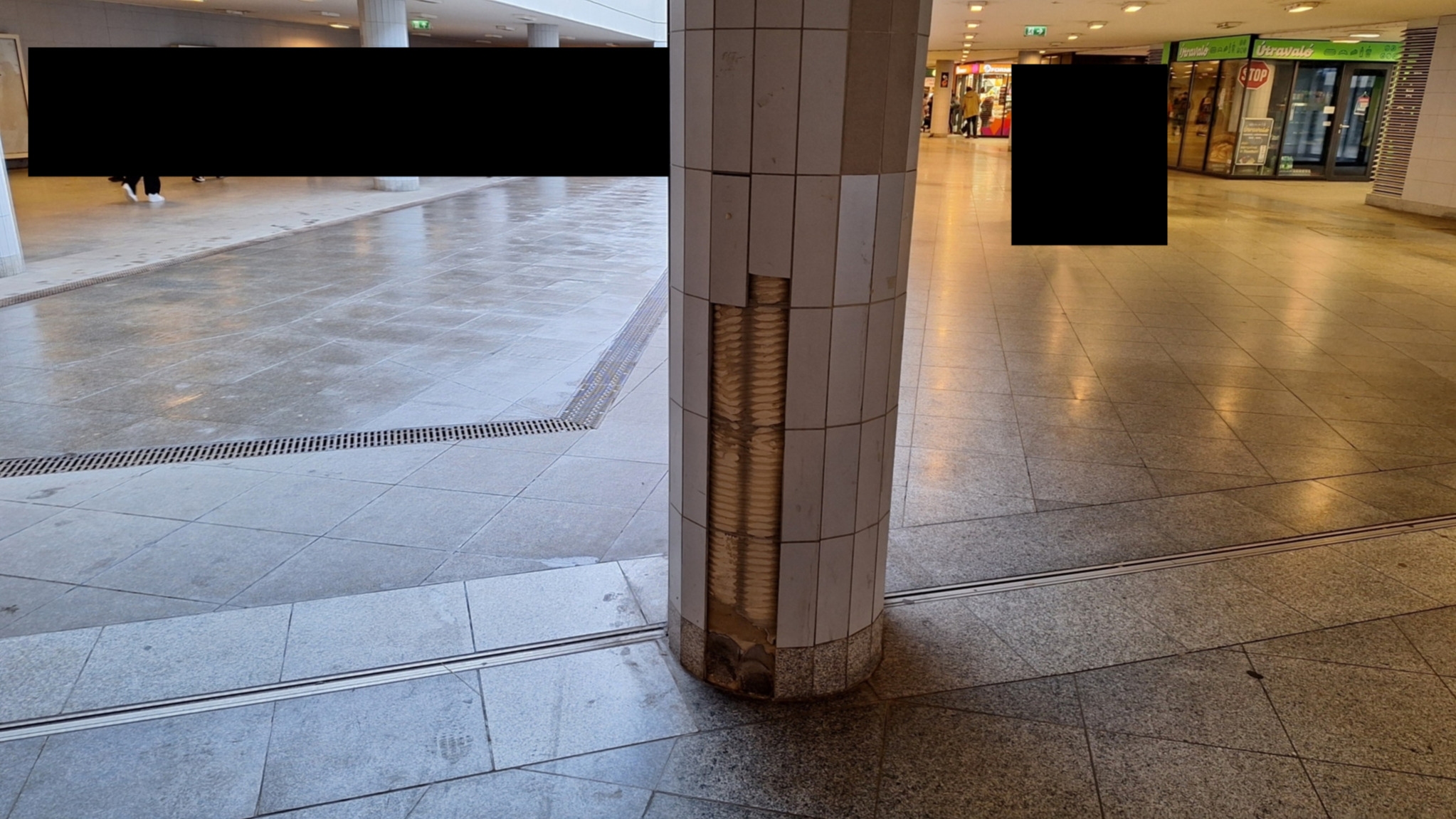A Baross téri aluljáróban több oszlopról is leesett a csempeburkolat egy része.
