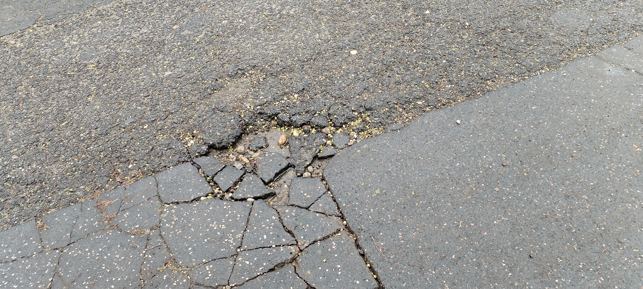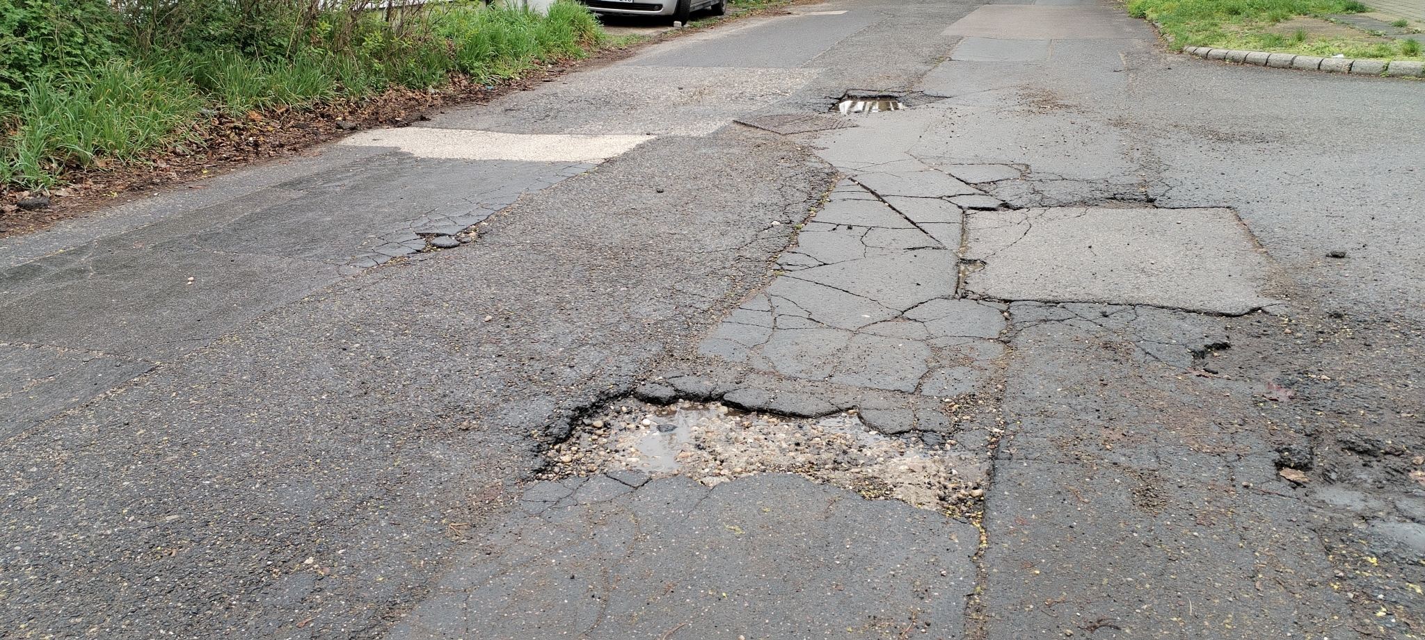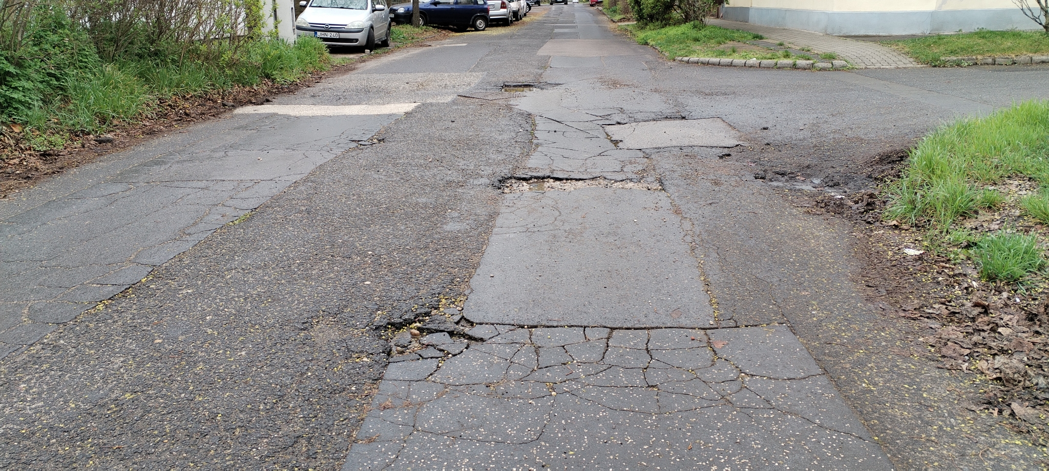 A 19. kerületi Szegfű utca tele van kátyúval, a Szegfű utca-Pákozd utca kereszteződésében pedig egy hatalmas süllyedés is van. Gyakorlatilag az általános iskolától indulva újra kellene aszfaltozni az egész utcát legalább az Endresz György utca kereszteződéséig, mert ez így nagyon veszélyes.