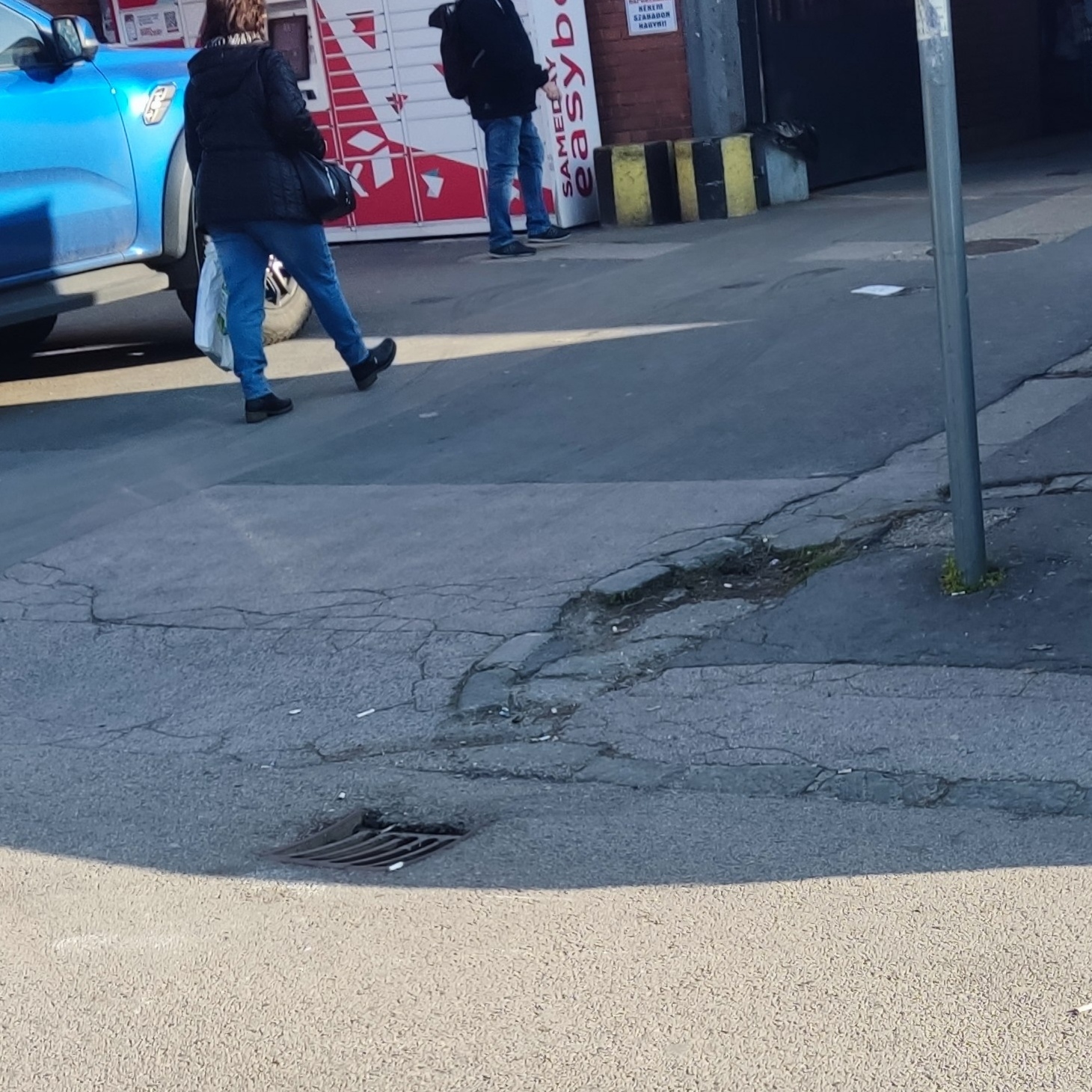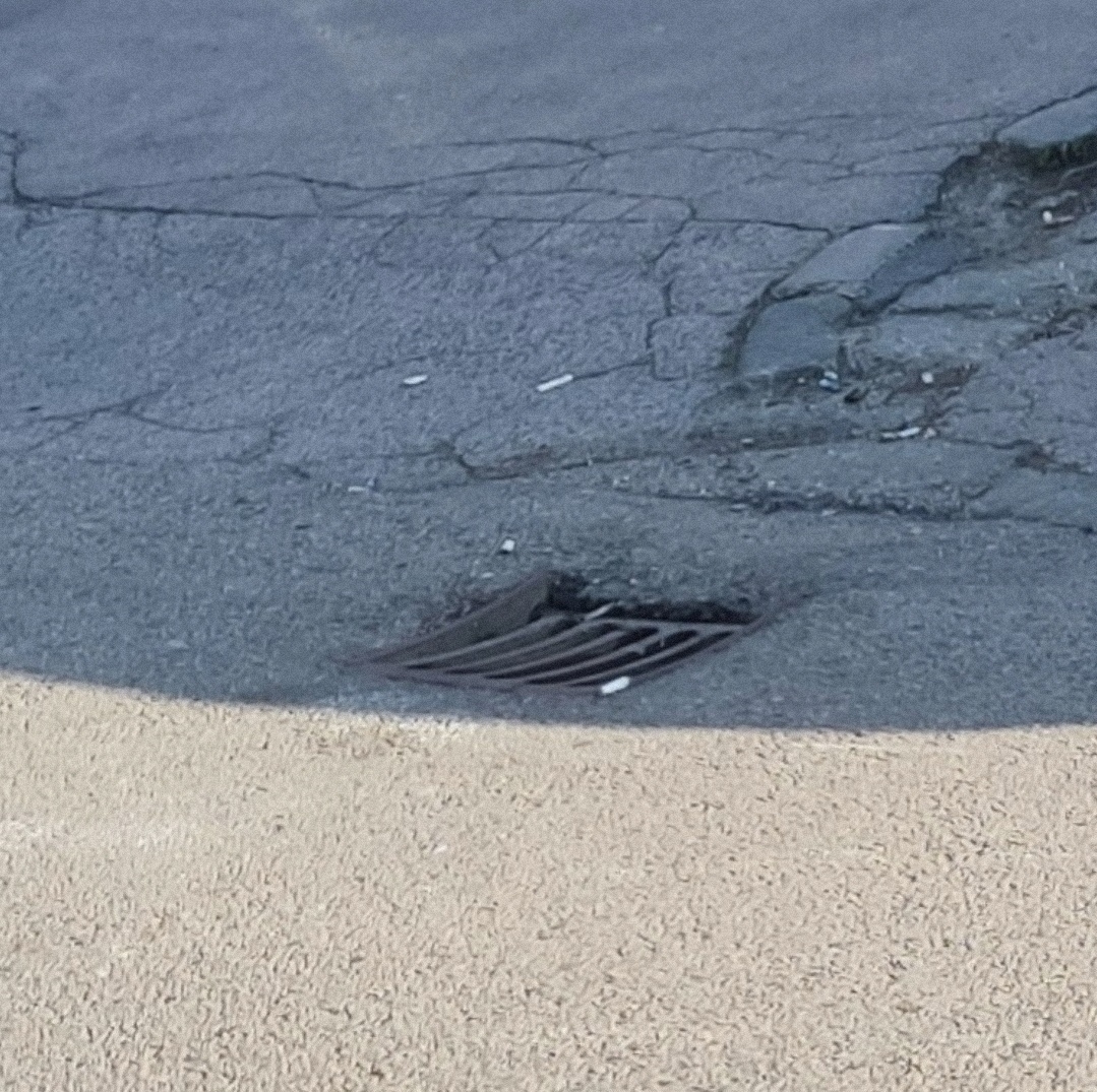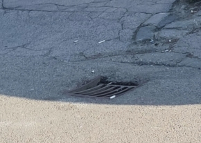 Megsüllyedt, botlásveszélyes víznyelő a piacnál.