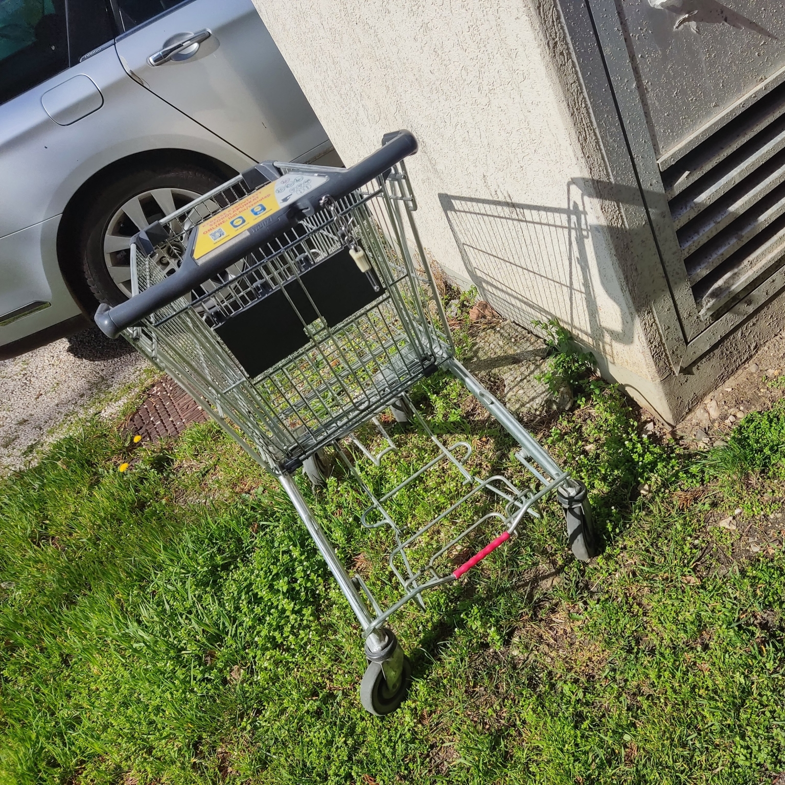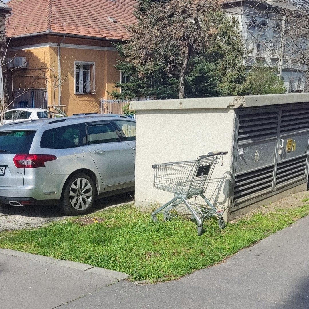 Ellopott/elhagyott/elgurult bevásárló kocsi.