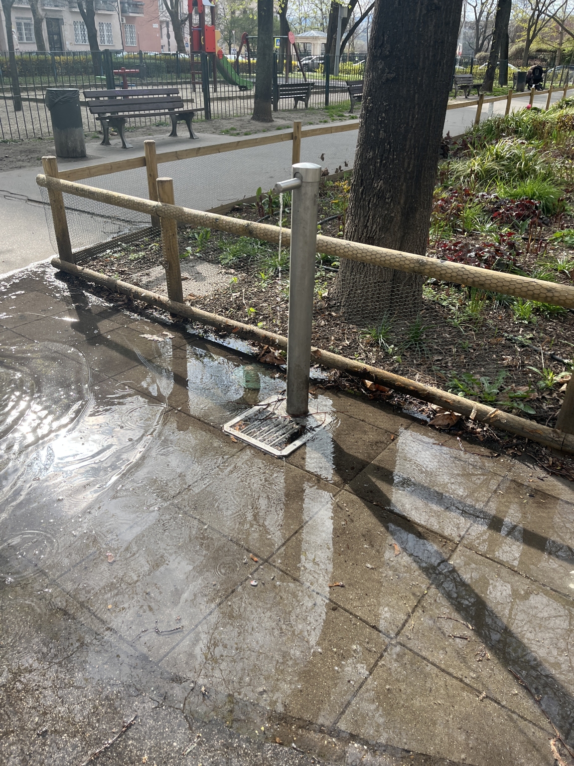 A kis Szent Istvan kis parkban folyamatosan folyik a viz az ivocsapbol, elzarni nem lehet.