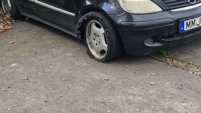 Vágóhíd utca 50. parkolójában hónapok óta ott van hagyva egy autó. Rendesen meg is van rongálva.