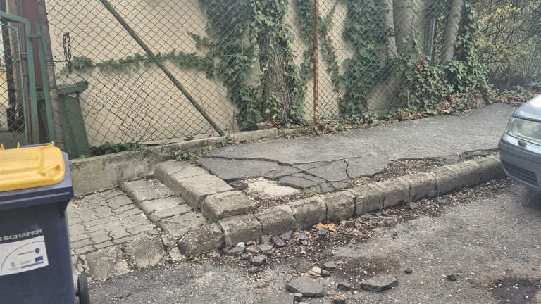 Széttört járda Szamóca utca