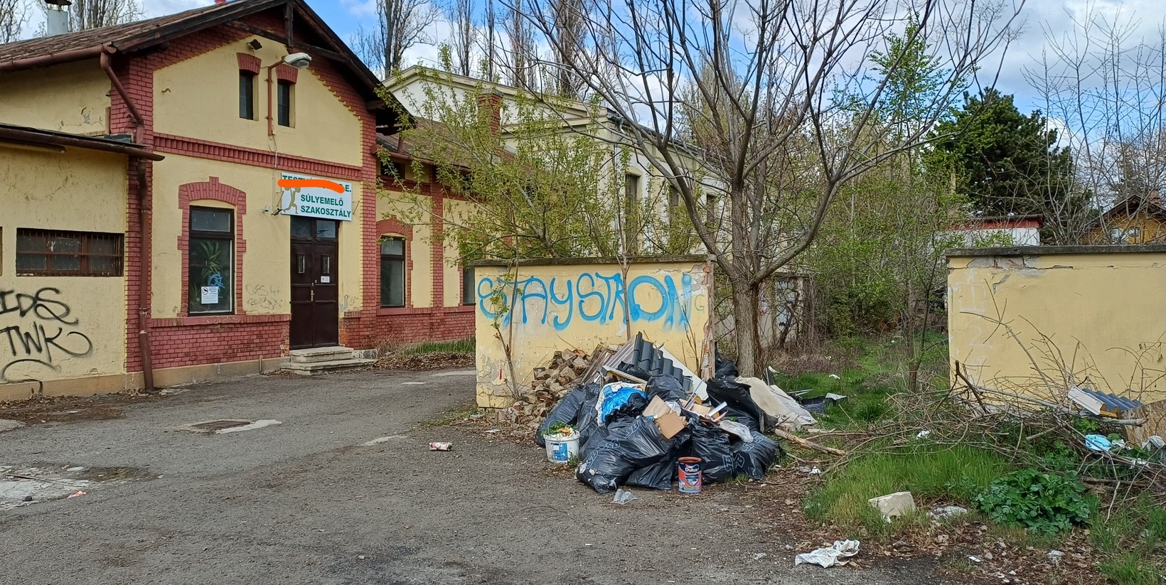 Szemétlerakás az istvántelki vasút megálló felüljárója mellett, a MÁV telephely oldalon.
