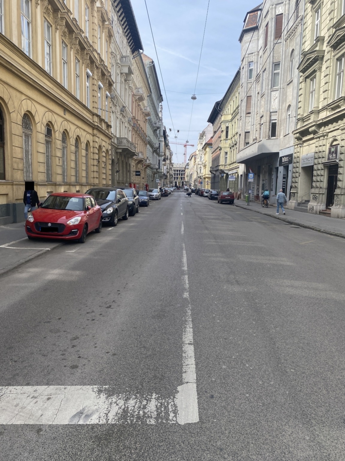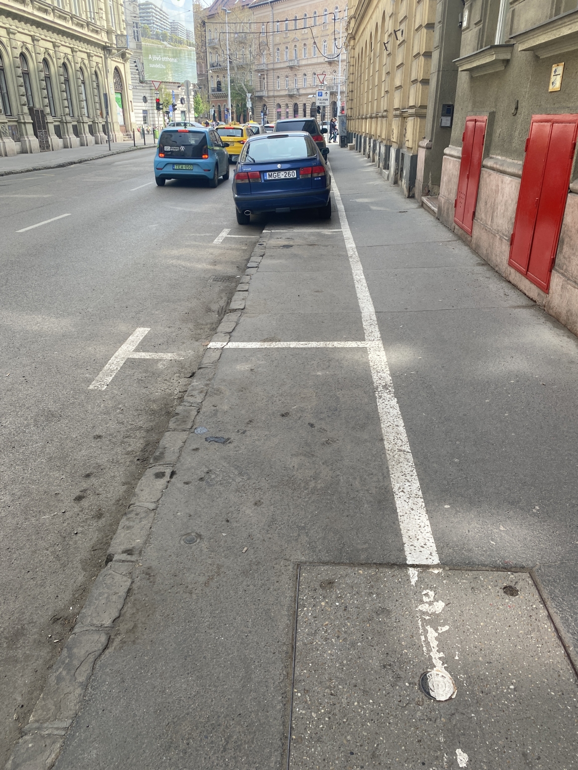 Kérem a parkolóhelyek újrafestésének felülvizsgálatát, és azok mindkét oldalon történő kb. 0,5 méterrel beljebb helyezését annak érdekében, hogy elegendő hely maradjon a kétirányú buszközlekedés számára.