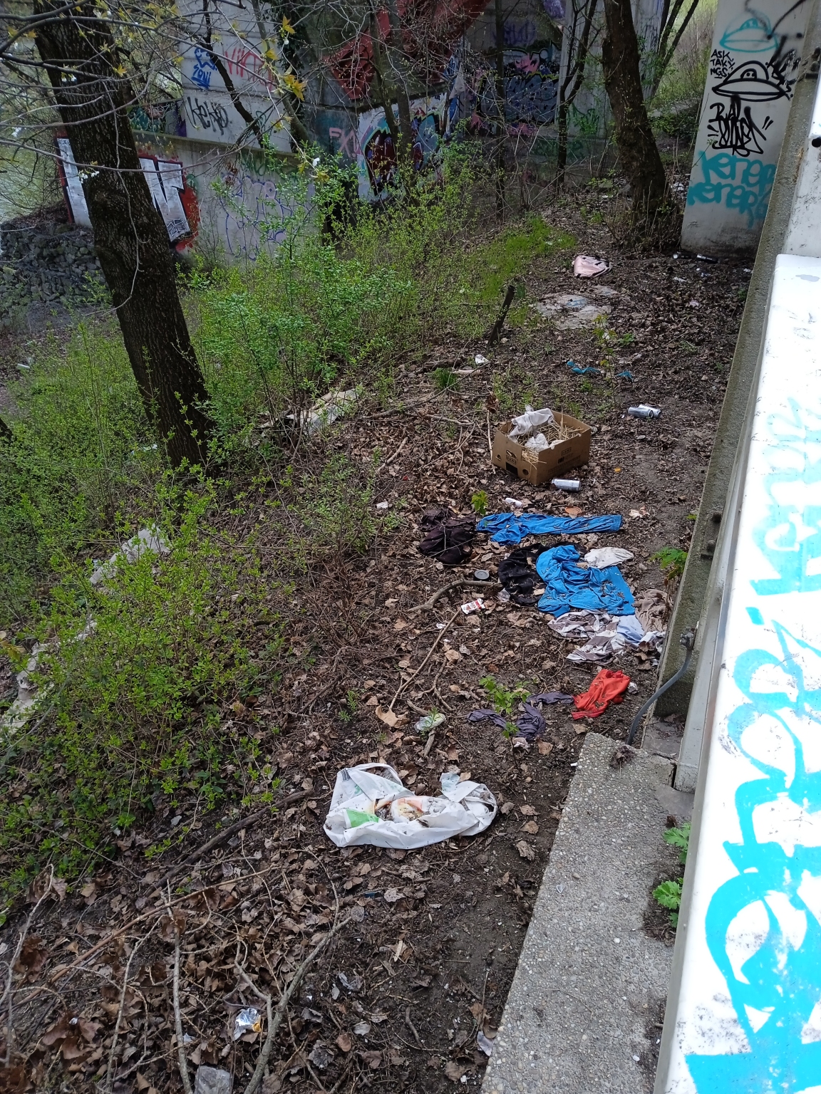 A Népszigeten, a Meder utcai gyalogoshíd lépcsőlejárója mellett jelentős mennyiségű szemét található (ruhadarabok, műanyag hulladék, spray, kartondoboz és egyéb eldobott tárgyak). A helyszín közterület, könnyen beazonosítható, és a gyalogosforgalom által gyakran használt útvonal mellett található.