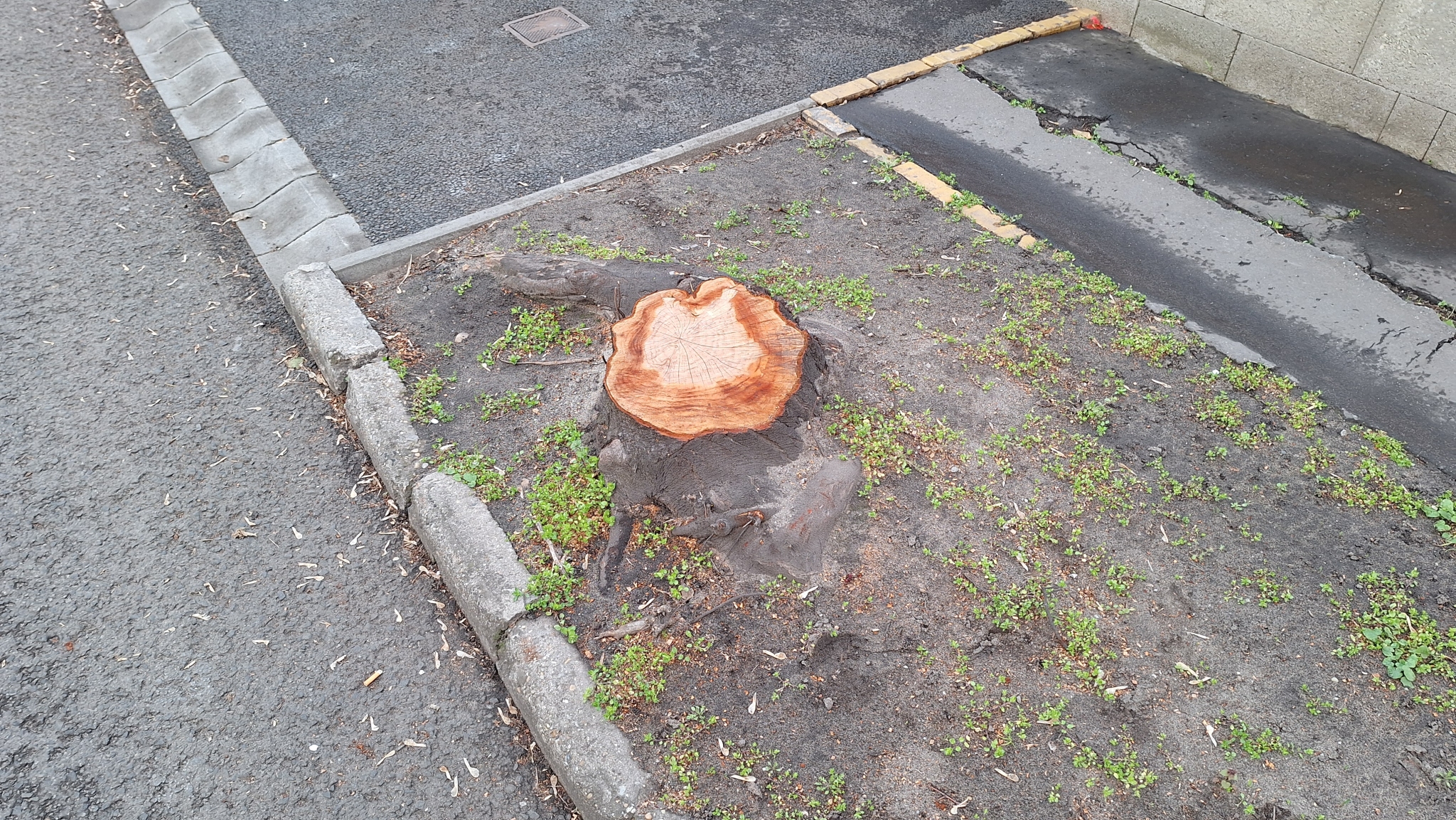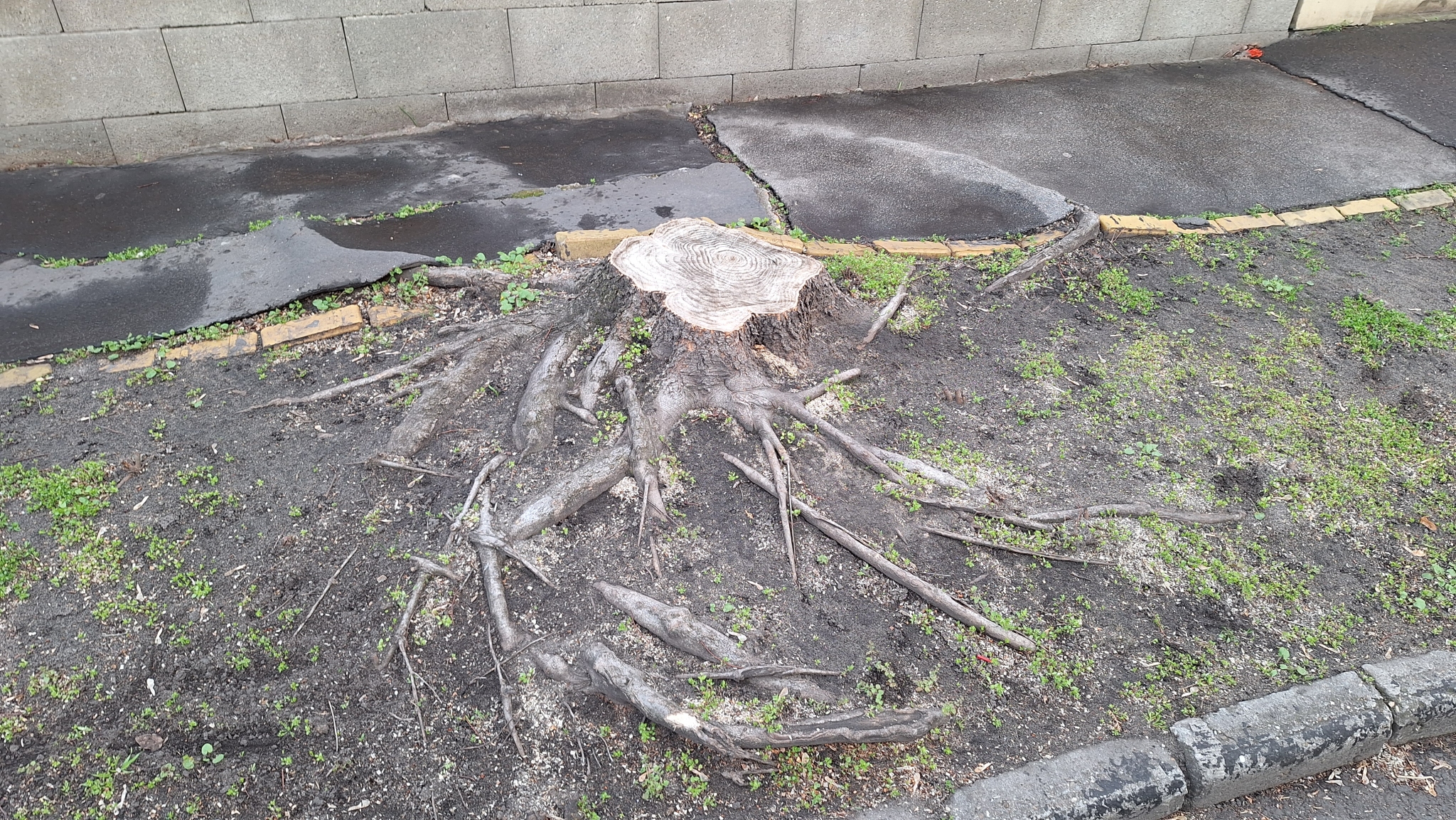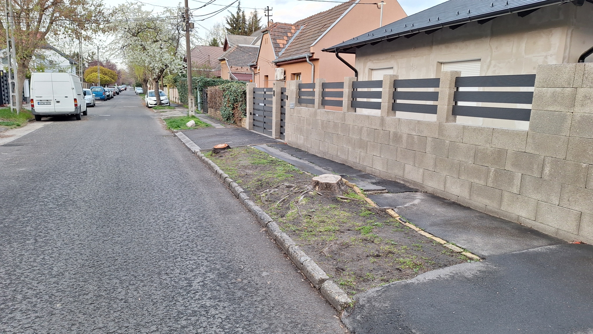 A Magyar utca 8. előtt van két fatuskó, az egyik mellett a gyökérzet a járdát is felnyomta.