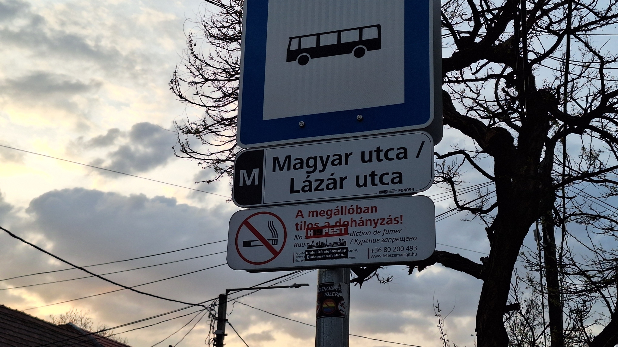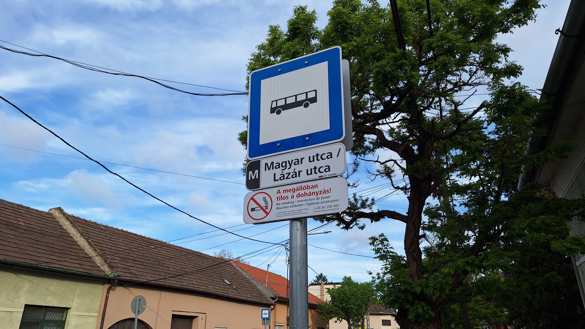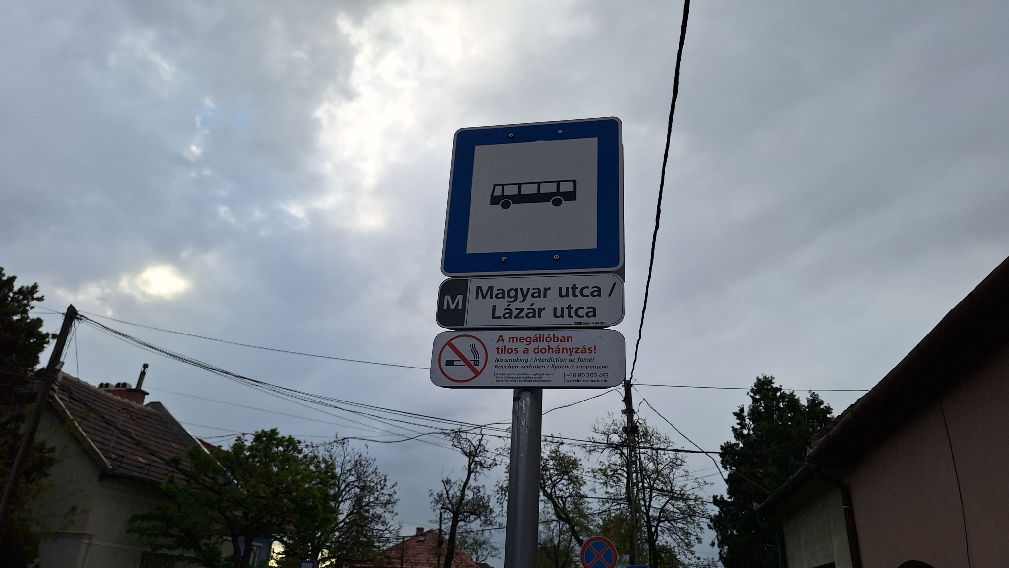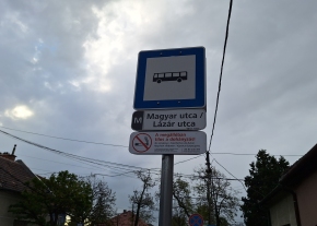 A 224-es busz Magyar utca / Lázár utca megállójában az egyik tábla, illetve a táblát tartó oszlop is gyűlölködő matricákkal van összeragasztva.