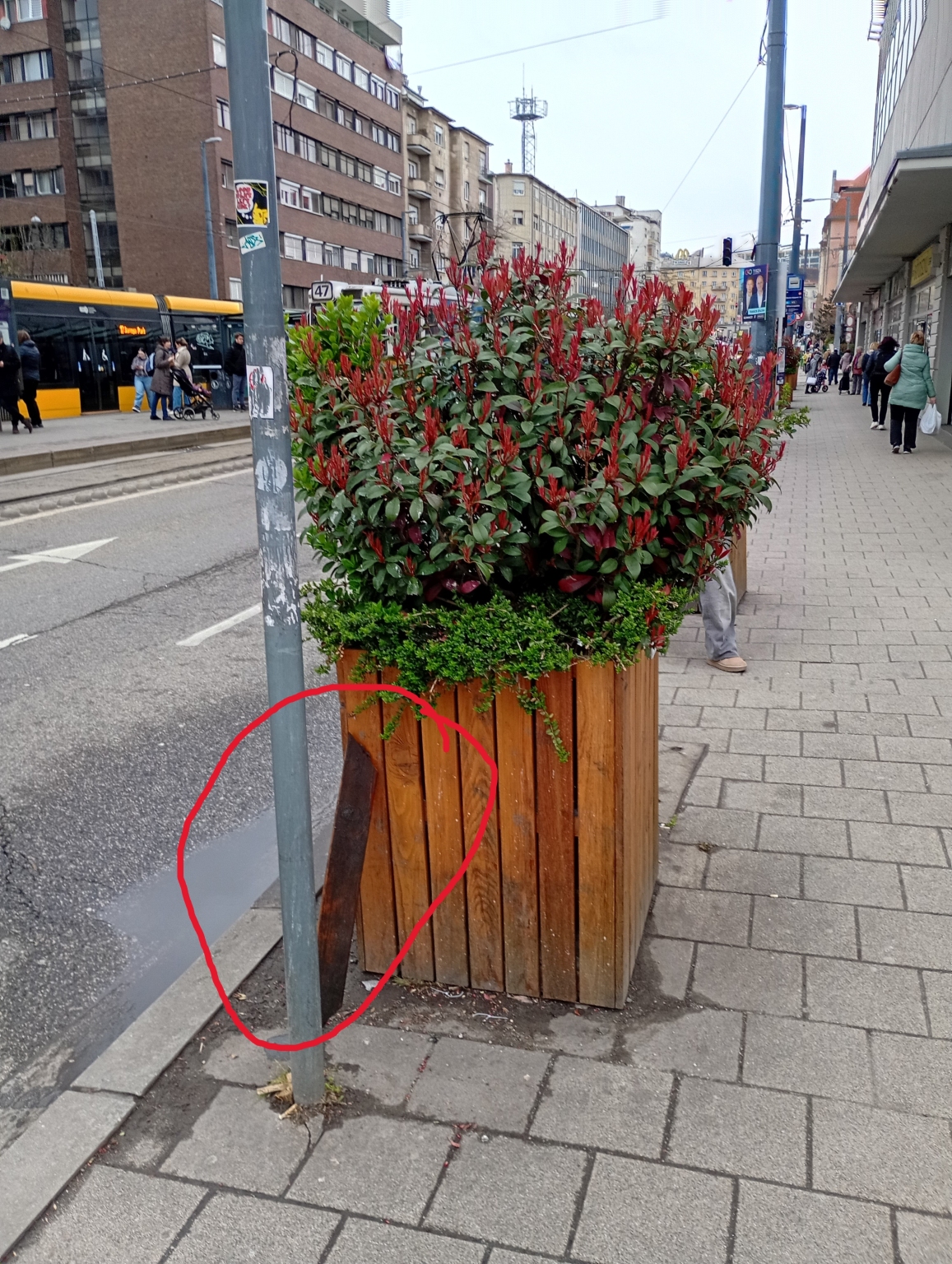 Kérem az illetékest, hogy a képen látható leszakadt deszkát legyenek szívesek rögzíteni a helyére, a virágládán!