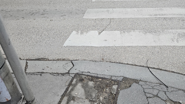 Az Üllői út és a Nagy Templom utca kereszteződésnél van egy sérült fedlap.