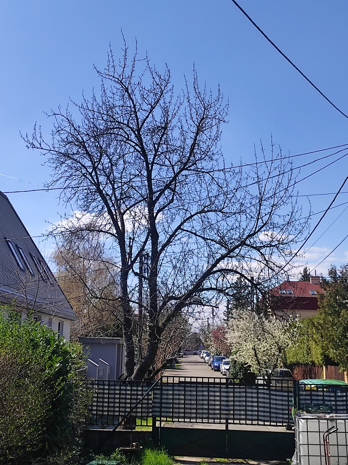 3. Balesetveszély: A hatalmas, száraz korona közvetlenül az elektromos/távközlési vezetékek mellett és felett található. Egy tavaszi viharban a kiszáradt ágak vagy a teljes törzs kidőlése súlyos anyagi kárt vagy személyi sérülést okozhat.