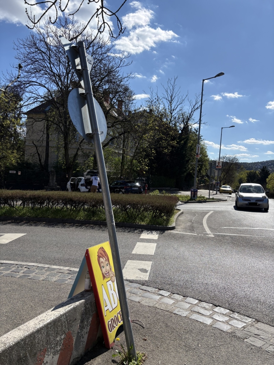 A 2. kerület Ady Endre utca és Bimbó út sarkán - a körforgalomnál - újra megrongálódott a közlekedési tábla, nekimentek. Kérjük szíves intézkedésüket, köszönjük!