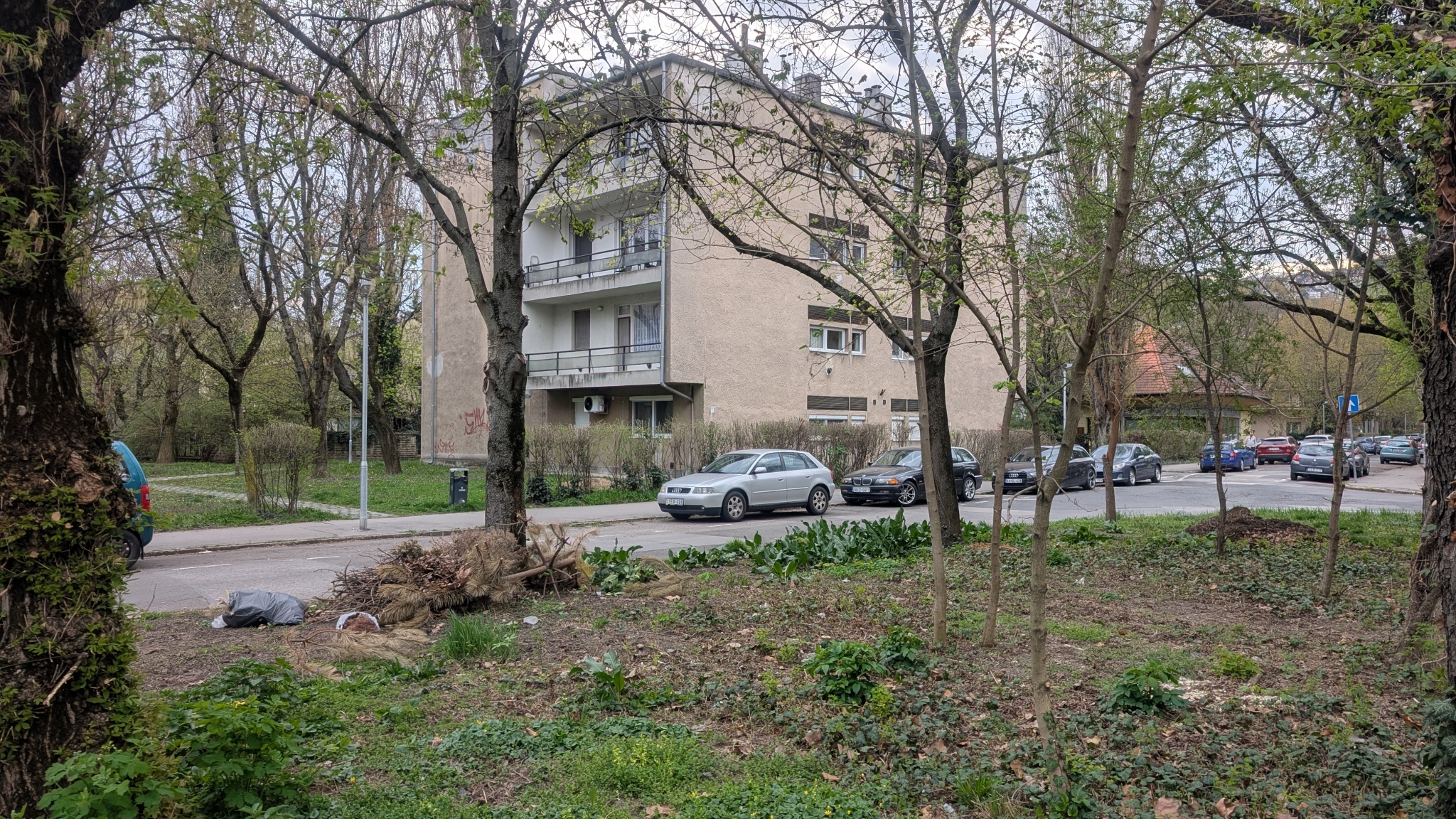 A Gyenes utcai parkoló mindkét oldalán zöldhulladék várja az elszállítást.