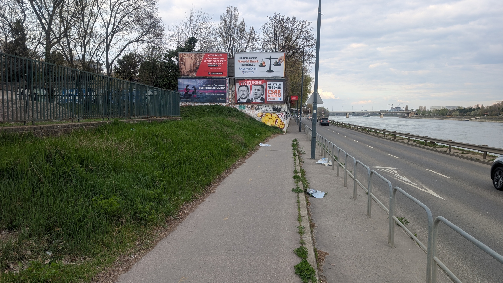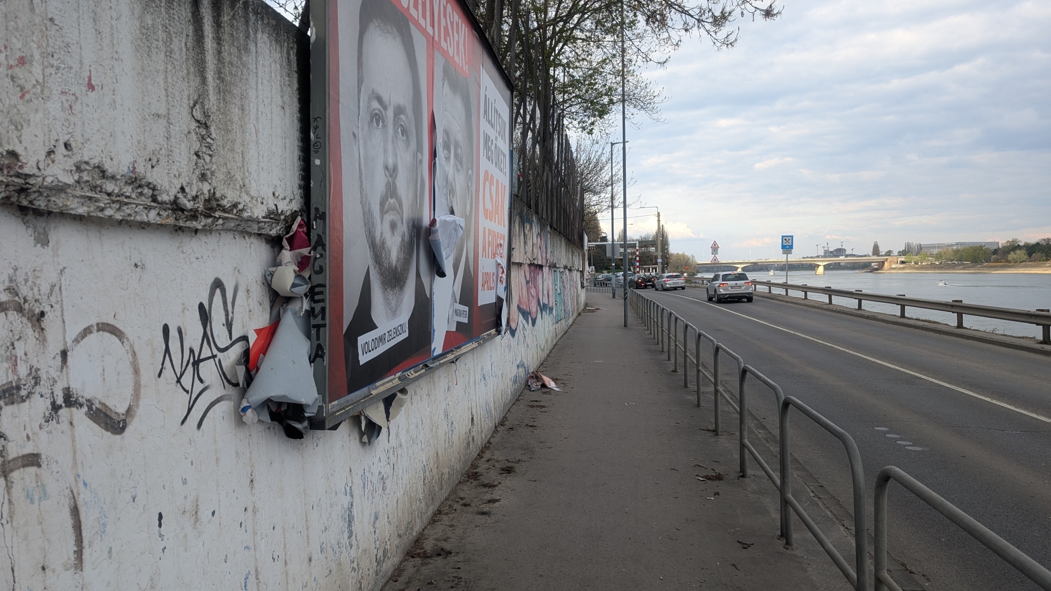 A Budapest Garden oldalán elhelyezett óriásplakátok mögé van begyűrve a korábban leszedett papír. A szél hordja mindenfelé.
