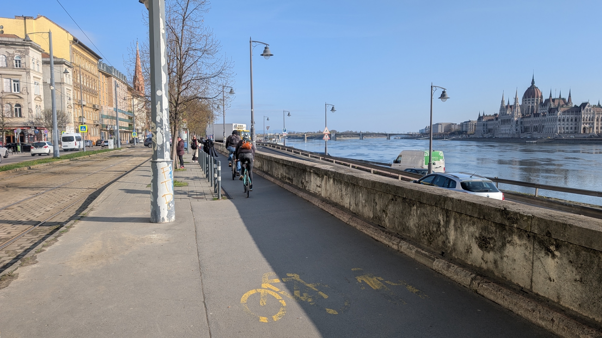A Batthyány tértől a Lánchíd irányában a közös kerékpáros-gyalogos járdán nagyon lekoptak a kerékpáros piktogramok, kérjük újrafestésüket. Illetve a Lánchíd előtti szakaszon teljesen hiányoznak is.