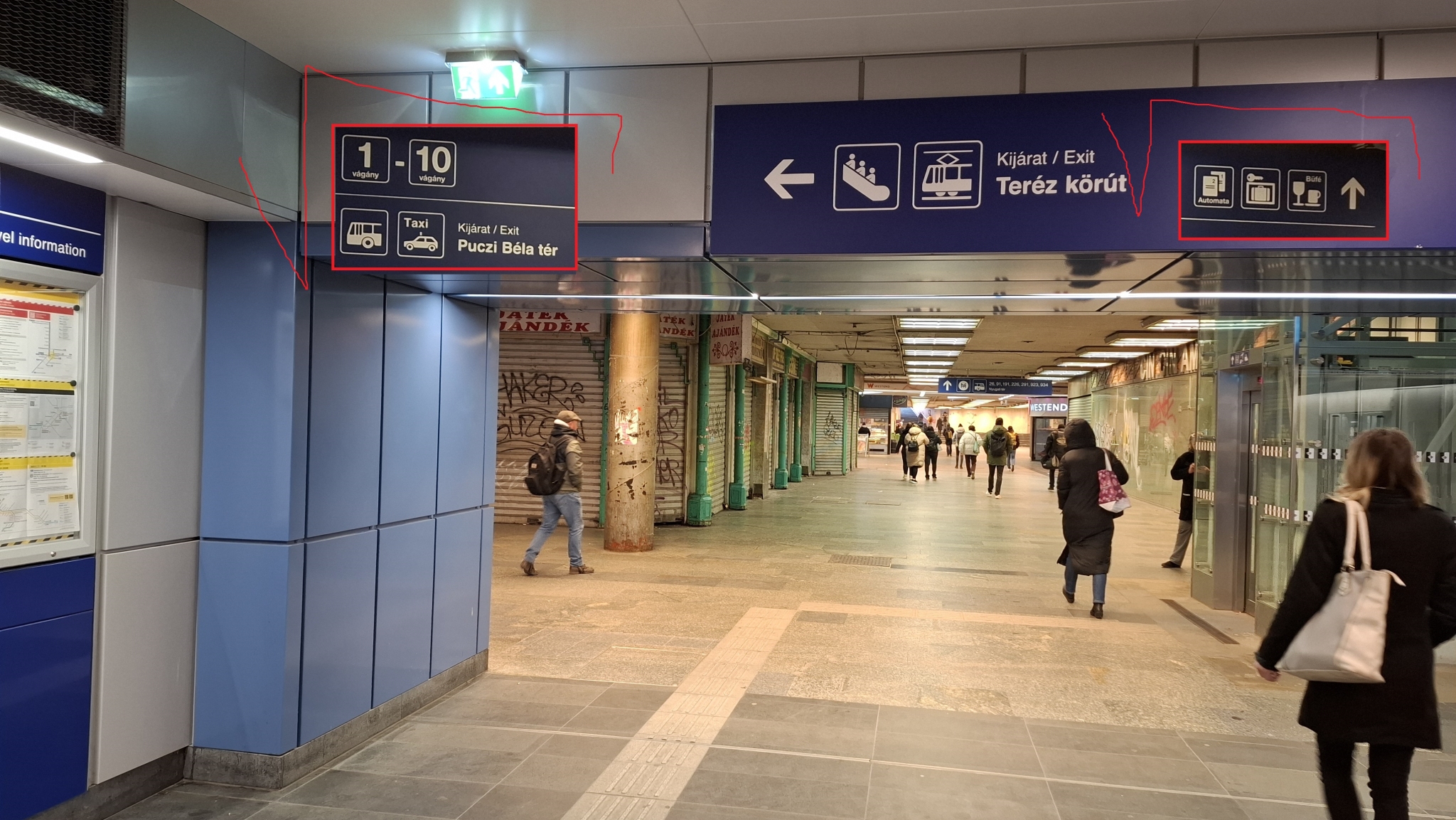 Véleményem szerint a Nyugati Pályaudvaron a vágányok alatt átvezető aluljáróban hiányos az új tájékoztató tábla. Leginkább az az információ hiányzik, hogy ballra fordulva a (mozgó)lépcsőn felmenve lehet elérni az 1-10 vágányokat.