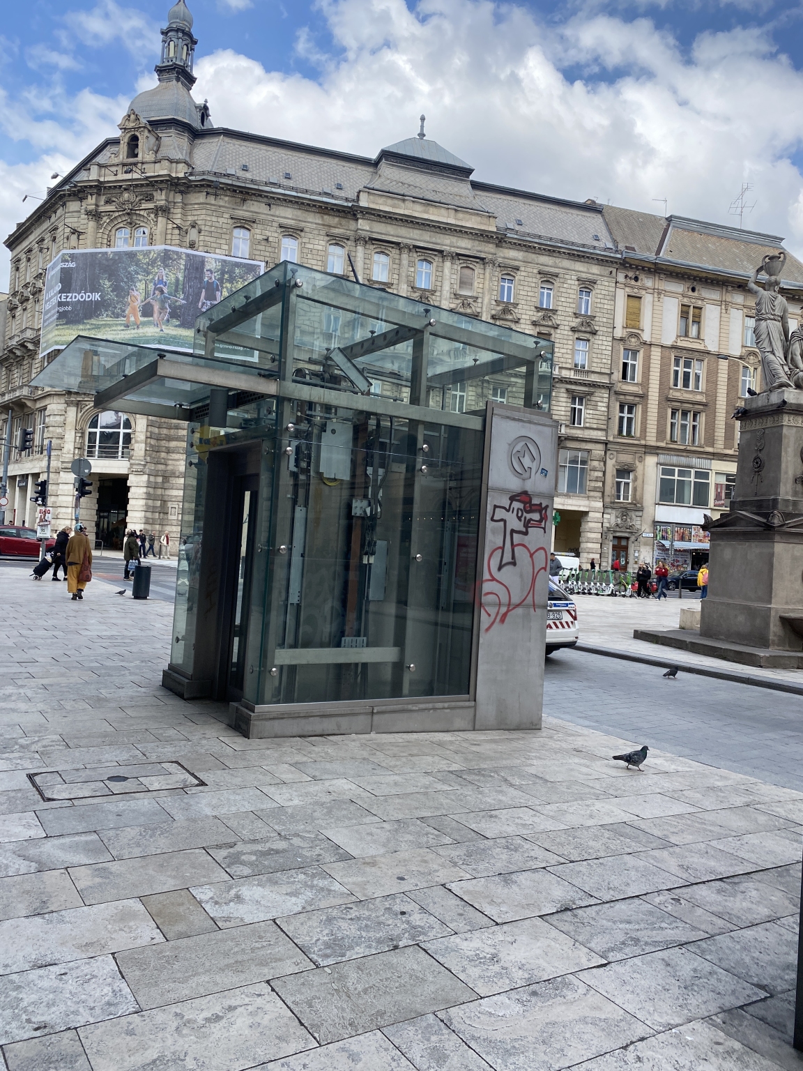 A Ferenciek terén, az aluljáróból a felszínre segítő lift rettenetesen büdös. Egyértelműen emberi pisi. Kutyával és babakocsival közlekedve nem tudok máshogy feljutni, de ez kibírhatatlan.