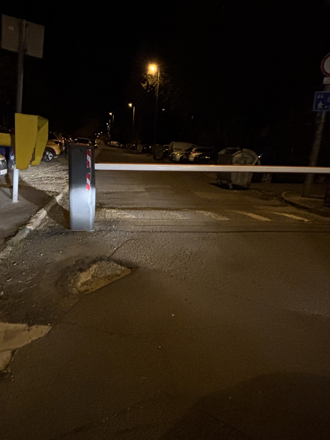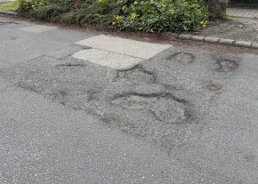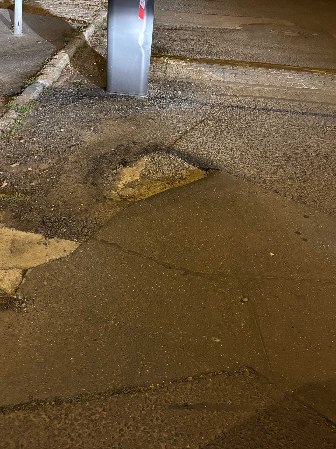 A XIX. kerület Lehel utca 1. szám előtt a képen látható kátyú van a sorompó előtt.