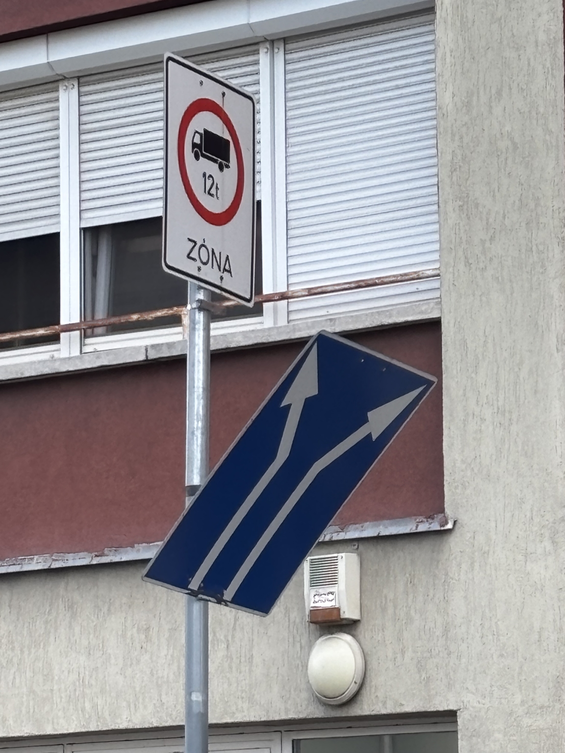 Budapest XVIII. kerületében a szél félig leszakított egy közlekedési táblát.