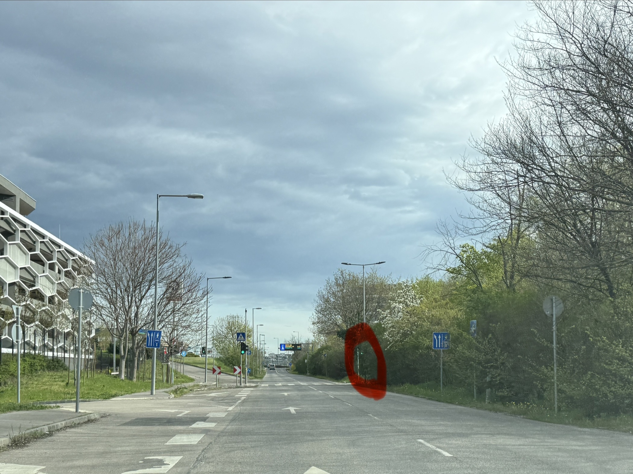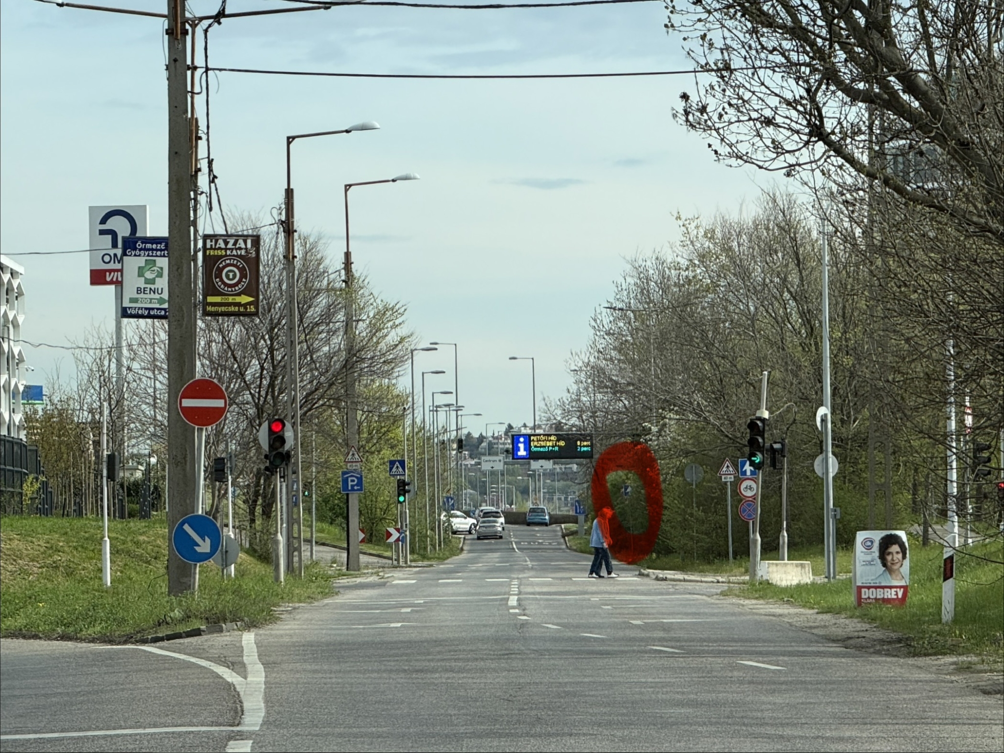 A Balatoni úton a Menyecske utca utáni részen teljesen benőtte a növényzet a jobb oldali közlekedési lámpát. A pár méterrel előbb lévő egyirányú utca tábla is kezd elveszni a zöldben.