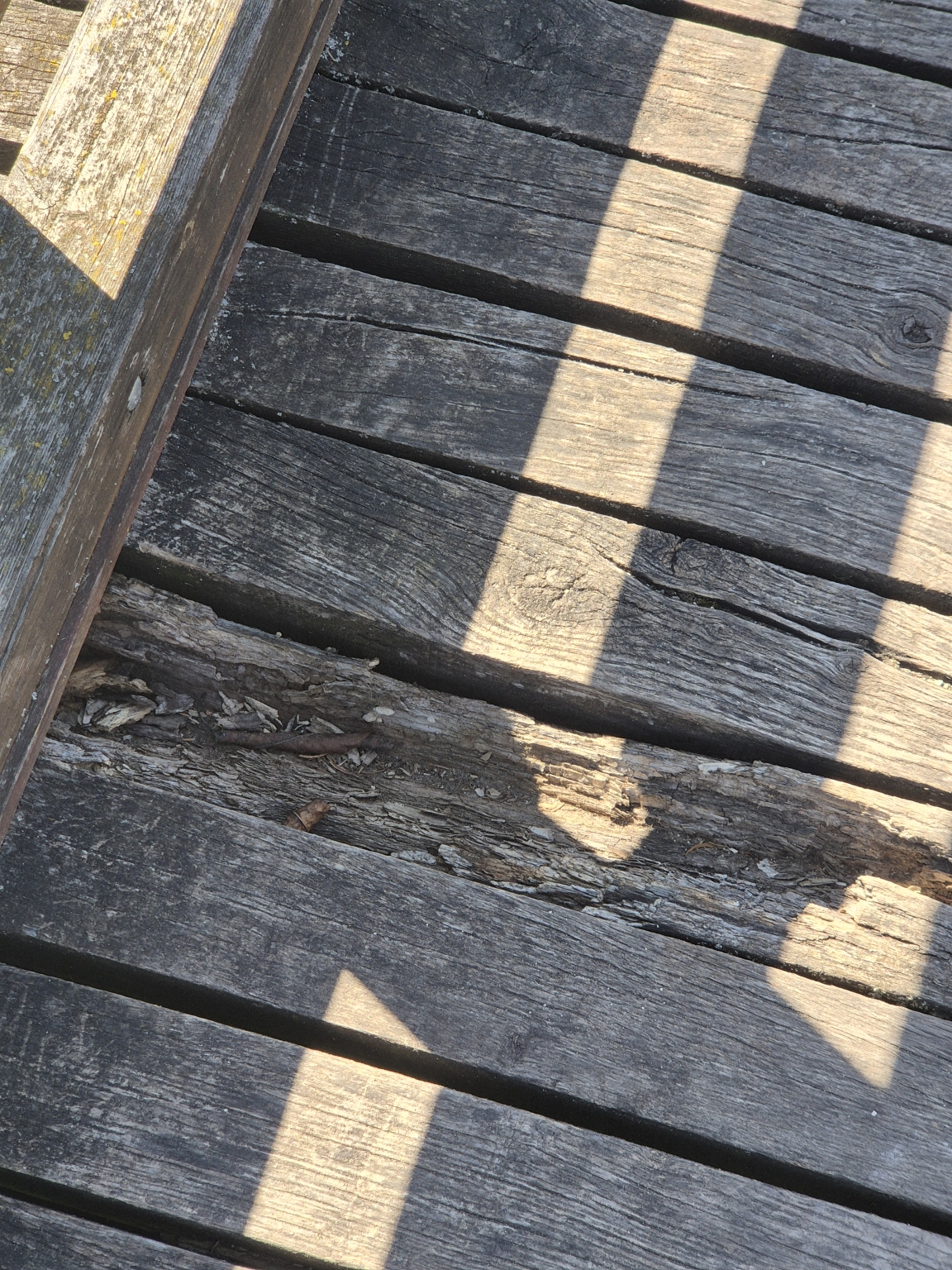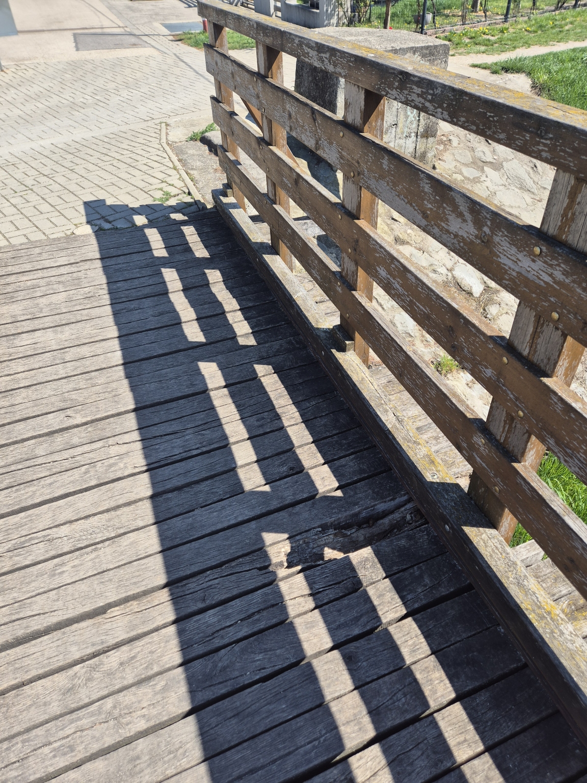A fahíd egy szakaszán már korhad a faléc, így veszélyessé téve azt.