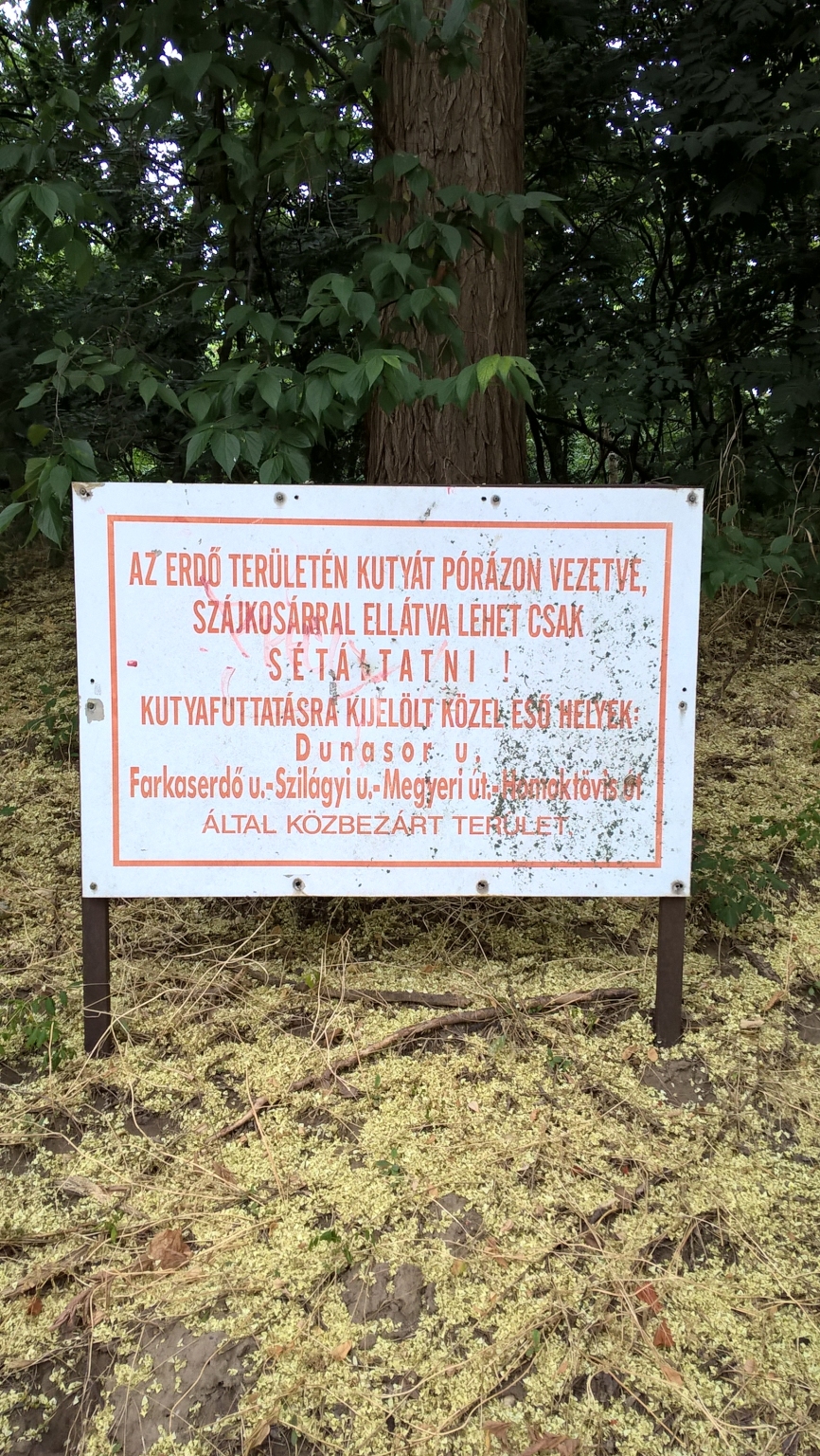 Ilyen táblák a 4. kerületben Újpesten a Farkas-erdőben ki vannak téve.