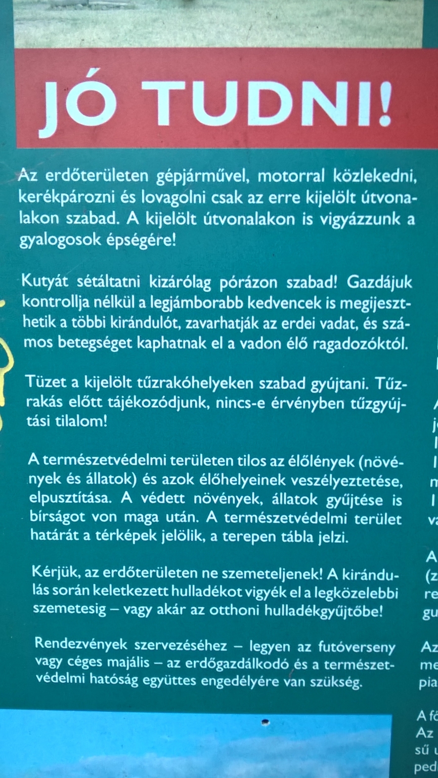 A Buda-hegységben az erdőben sokan elengedik a kutyájukat. A Pilisi parkerdőben ki vannak téve "jó tudni" címszóval fontos információkat tartalmazó táblák - mit nem szabad. Ha a kutya elcsavarog elveszhet, vaddisznóval találkozhat, megijeszthet valakit stb.