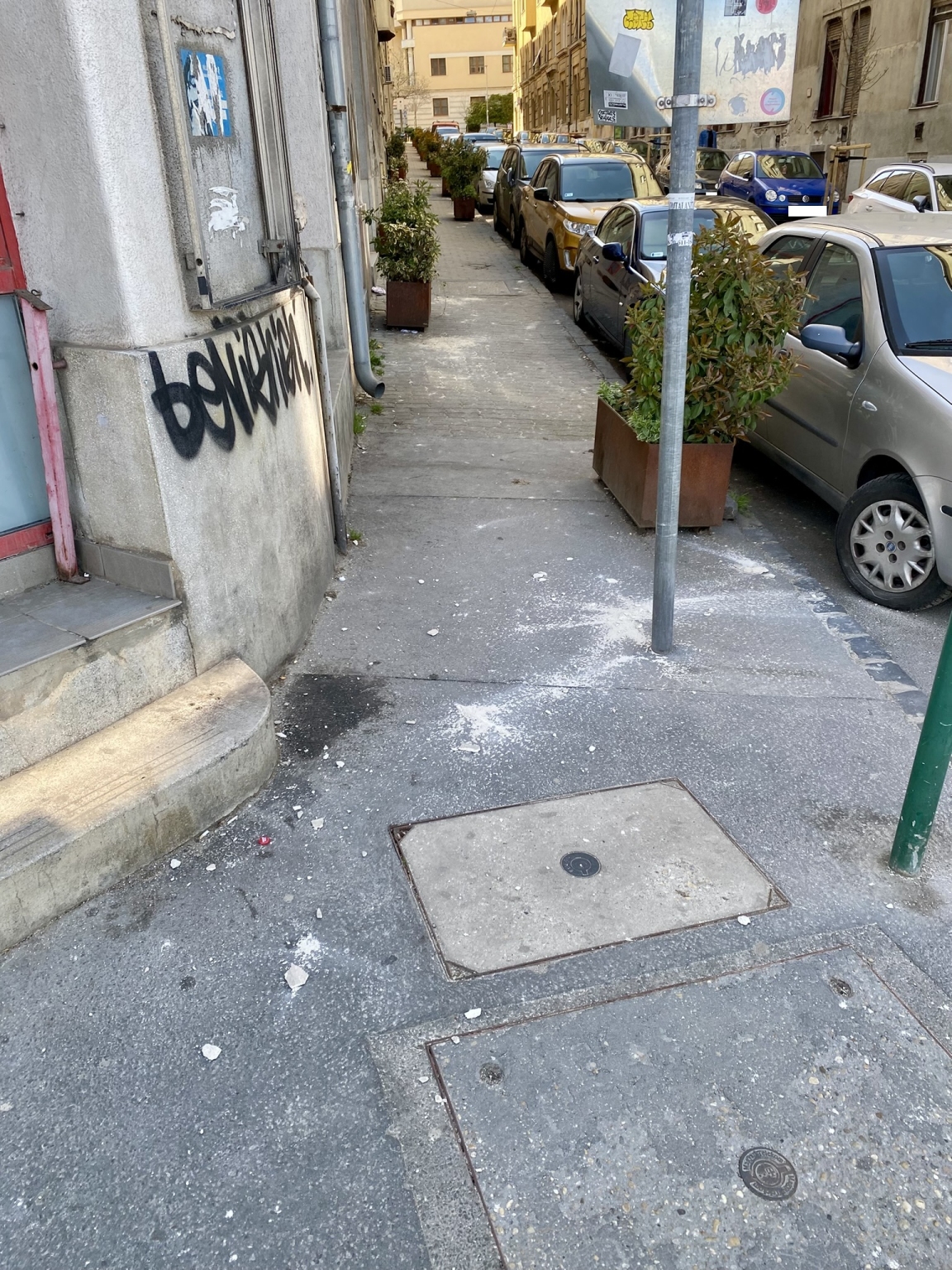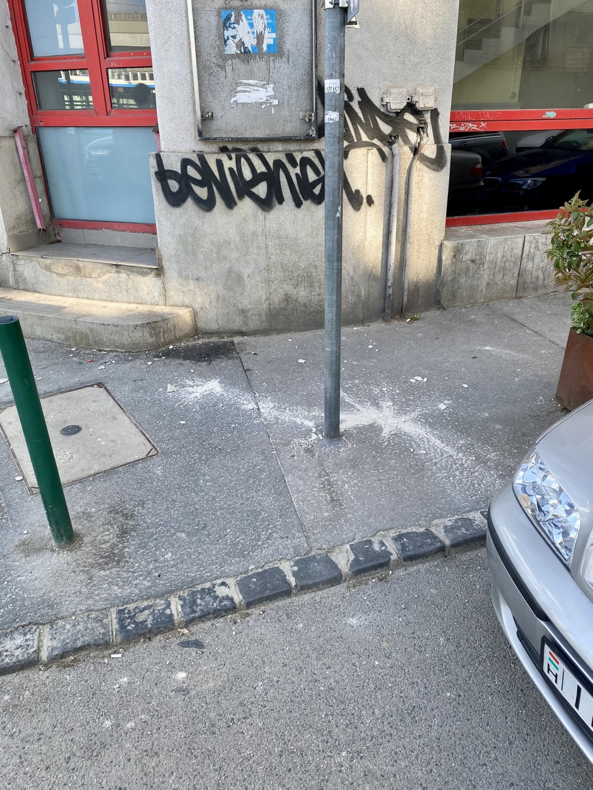 Ennél is nagyobb gond, hogy a homlokzat alatt folyamatos a gyalogosforgalom.