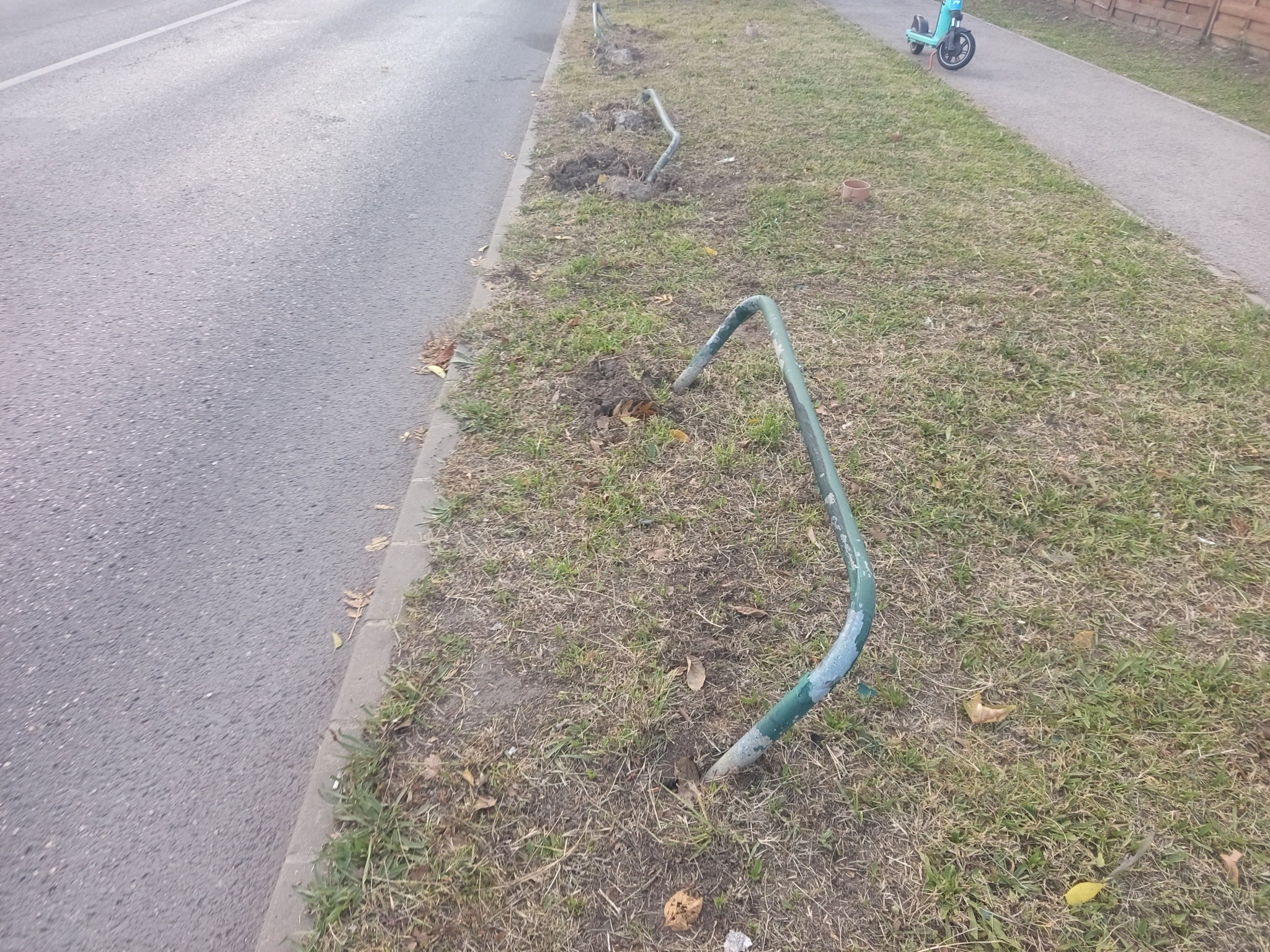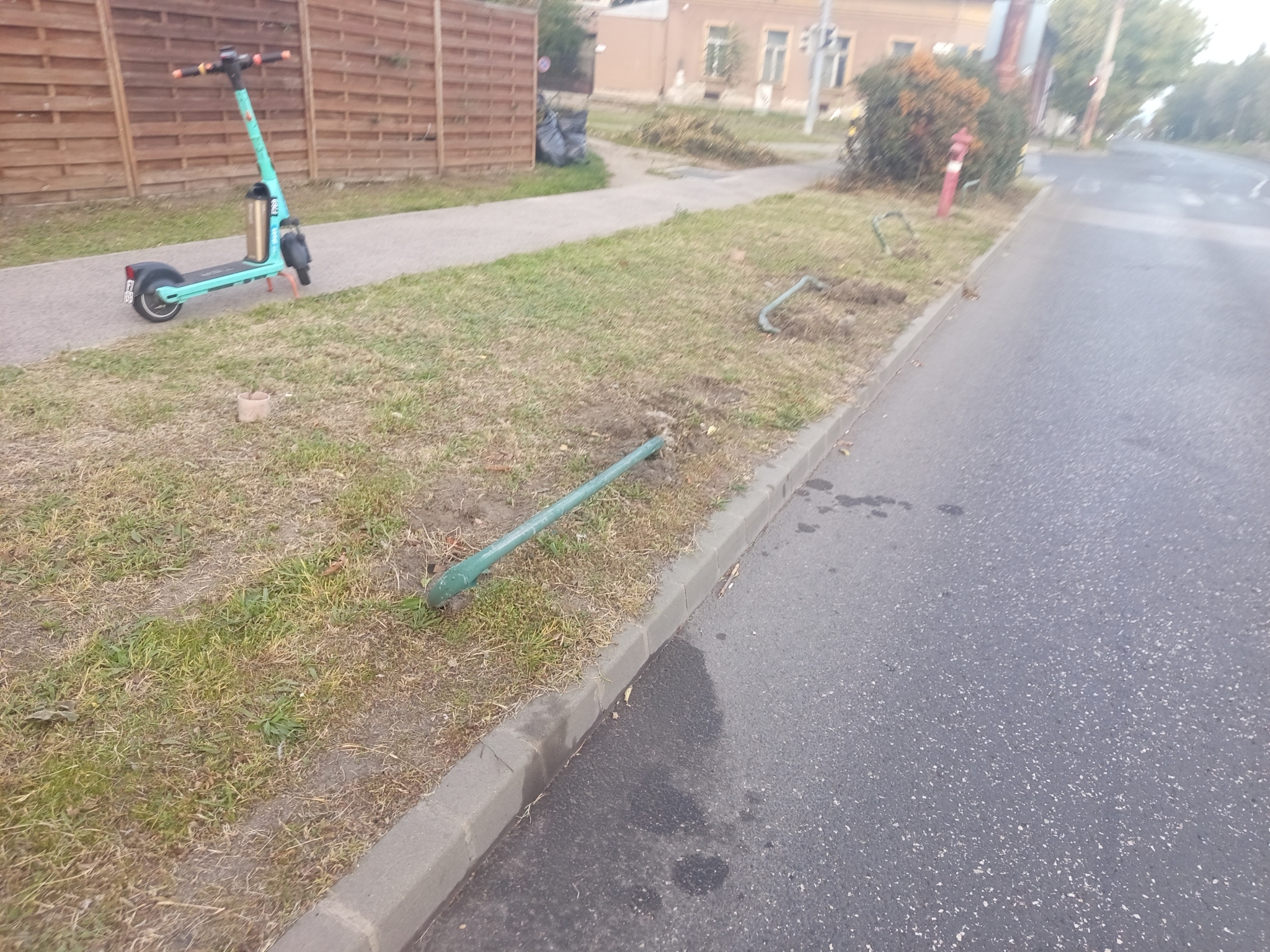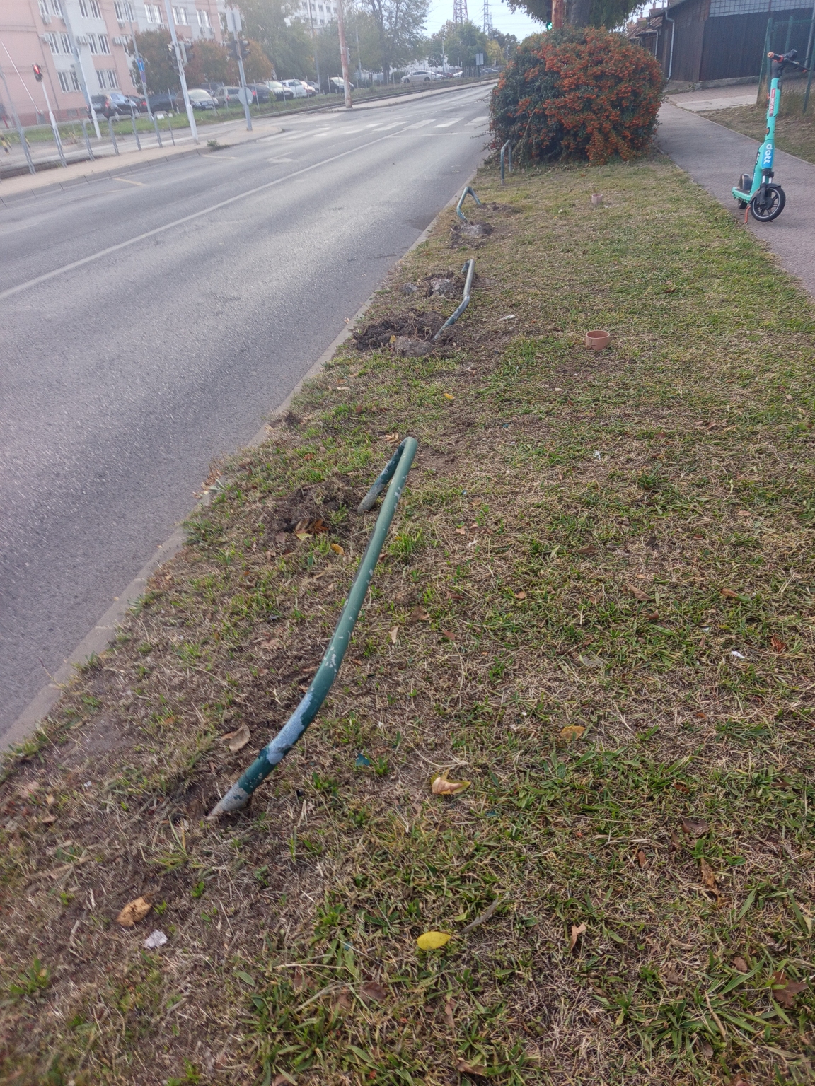 Kettő darab rongálódott és egy kidöntött terelő vasrúd! Megkérném az illetékest hogy gondoskodjon a probléma megoldásáról! Előre is köszönöm!