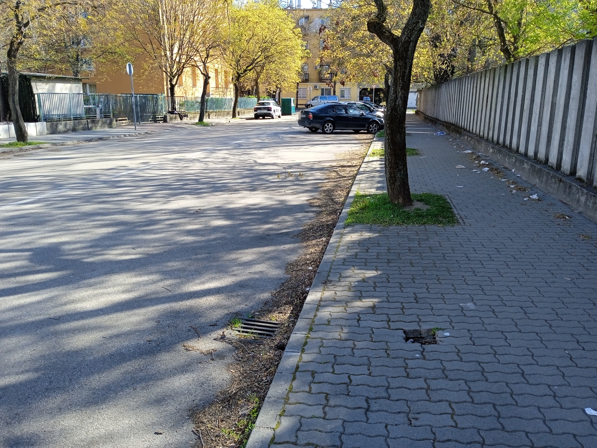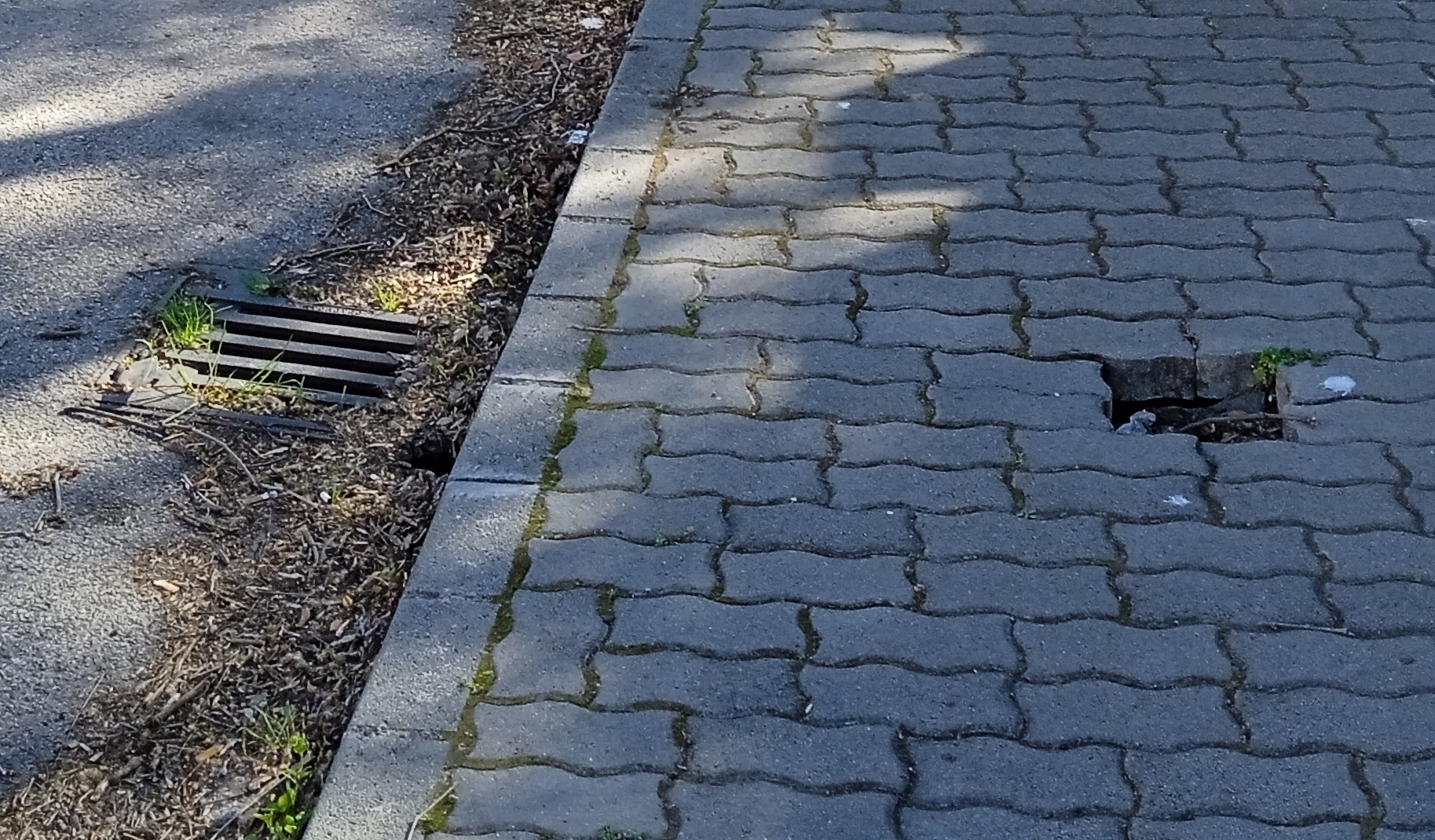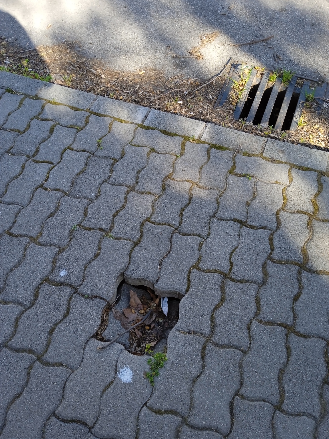 A járdán a burkolókő jelentősen lesüllyedt, és alatta üreg alakult ki. Valószínűleg a csapadék kimosta alóla a földet.